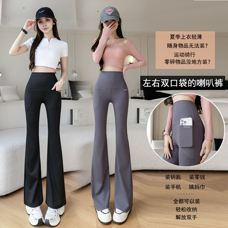 Большой размер акула расклешенные брюки женские черные золотые микро-раку брюки двойные карманы весной и осенью