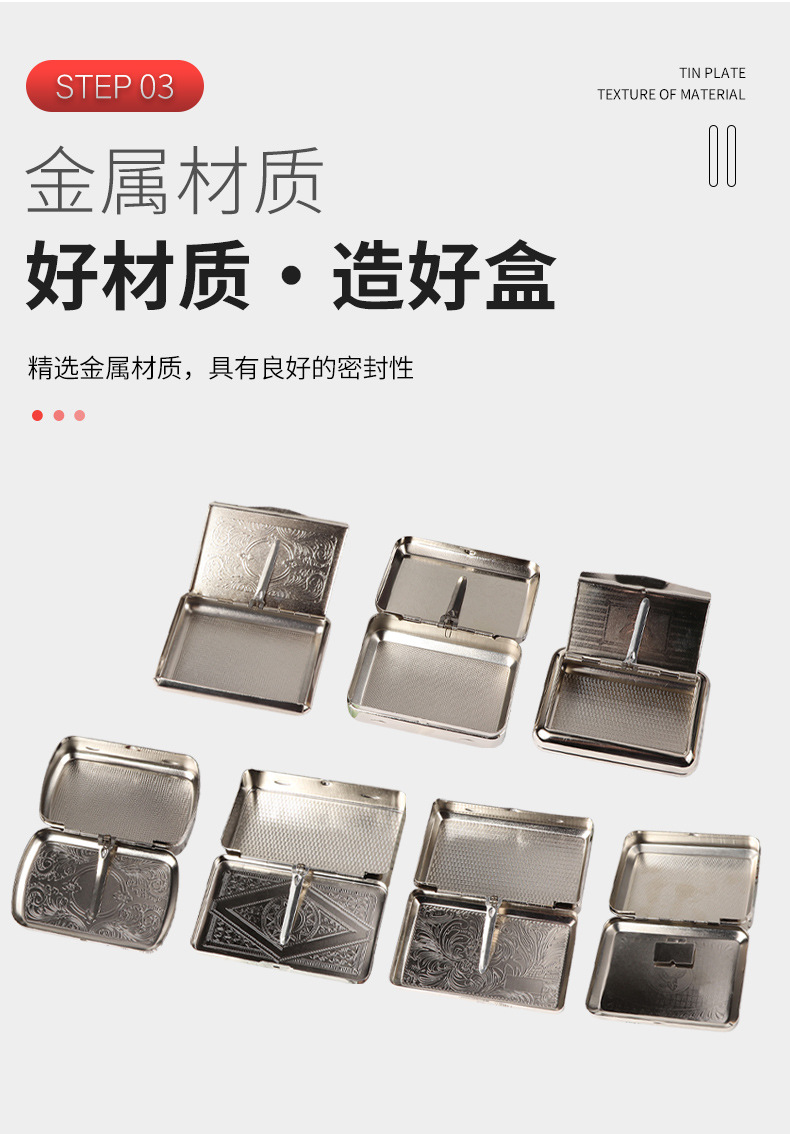 Коробка для табака №1; Коробка для табака №2; Табачная коробка №3; Коробка для табака №4; Табачная коробка №5; №6 коробка для табака; Коробка для табака №7; Простой серебряный портсигар; Простая коробка для табака с золотым покрытием; Простая коробка для табака - черная