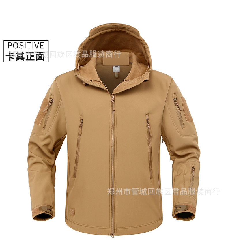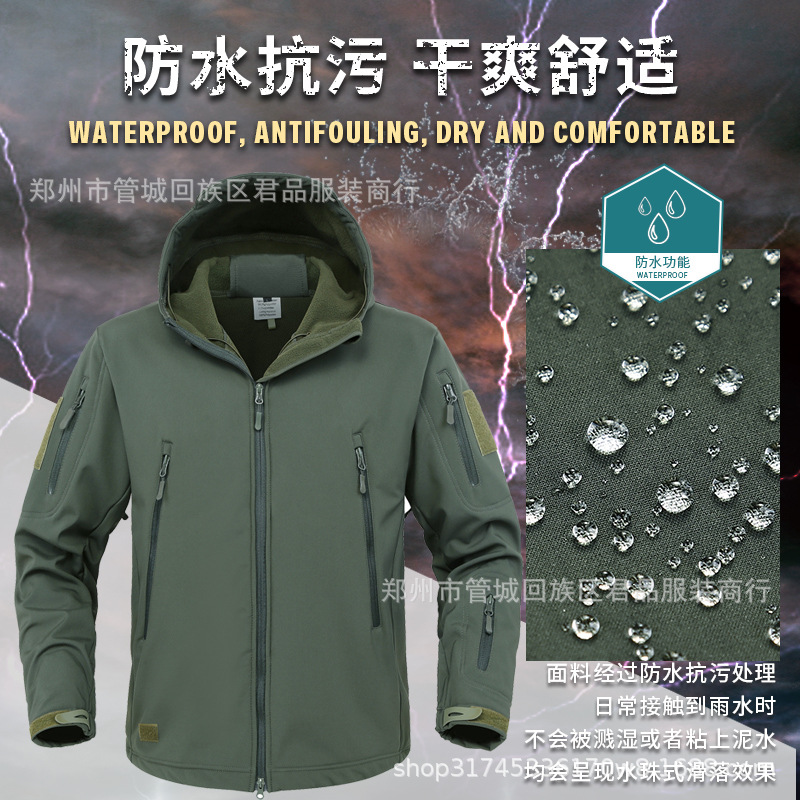 Производители напрямую поставляют куртку из кожи акулы плюс бархат на открытом воздухе теплая камуфляжная куртка