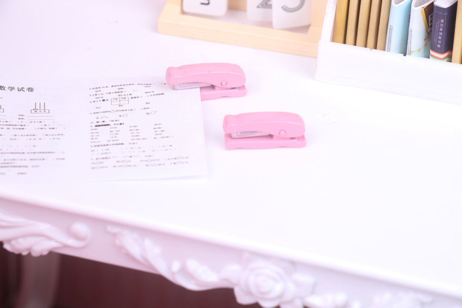 Светло-розовый степлер; светло-розовый калькулятор; синий степлер; синий калькулятор; Темно-розовый степлер; Темно-розовый калькулятор
