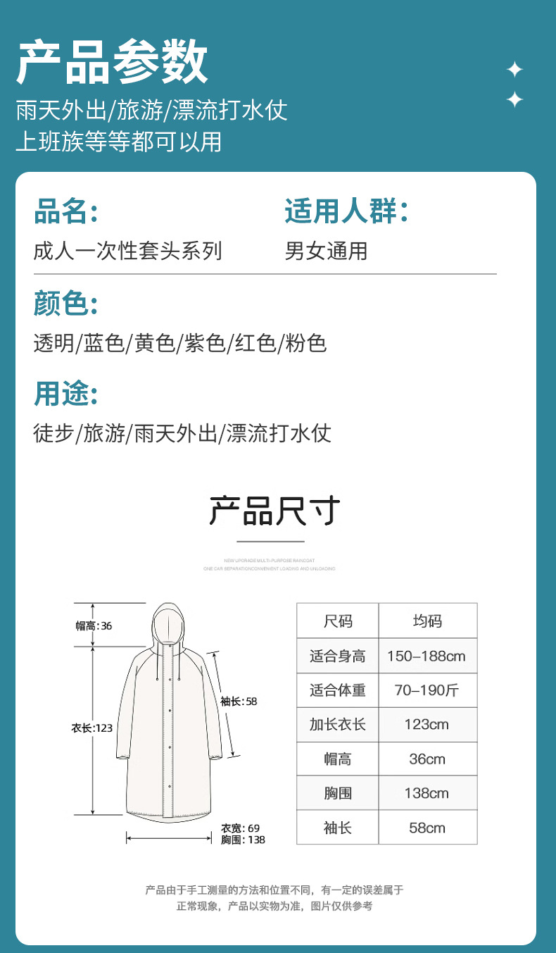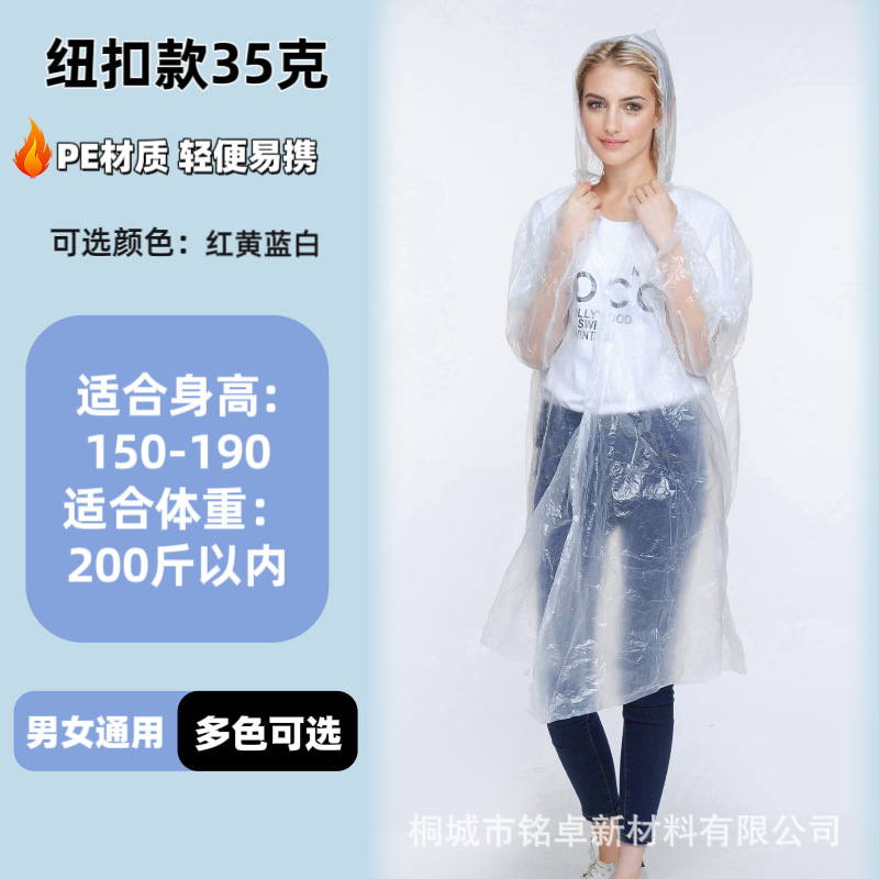 Одноразовый дождевик на пуговицах, цельный прозрачный, для рафтинга, живописных мест, концертов, удлиненный и утолщенный, удобный пончо для взрослых