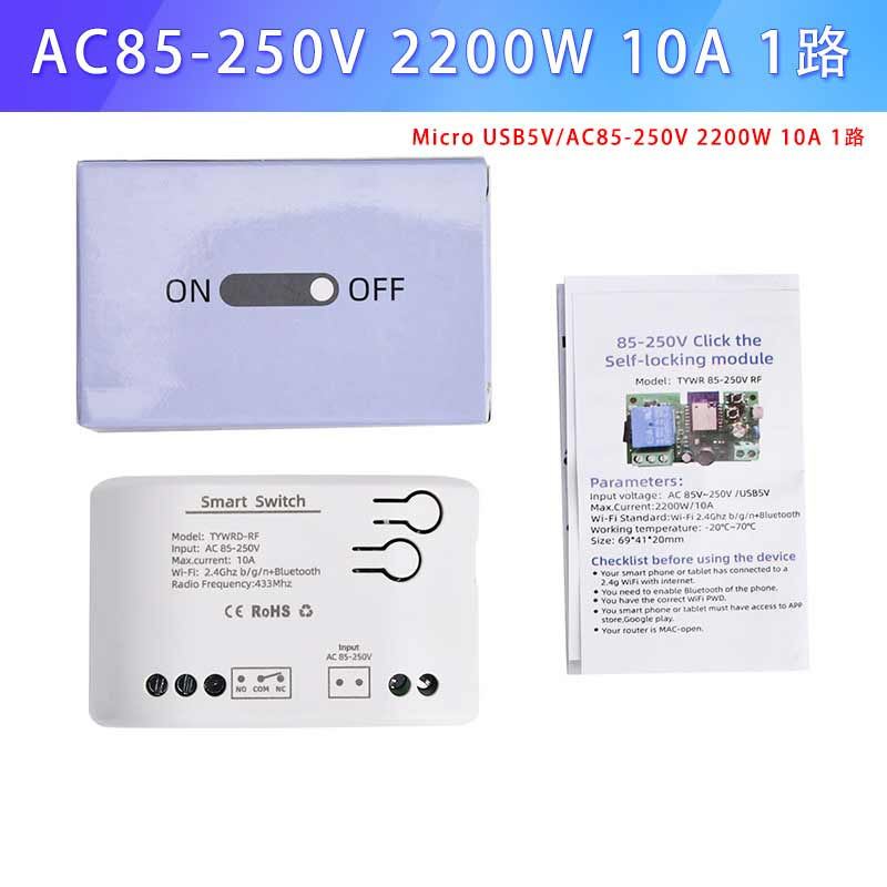 10A Tuya APP одноканальный радиочастотный самоблокирующийся радиочастотный модуль 1-канальный модуль реле дистанционного управления Wi-Fi