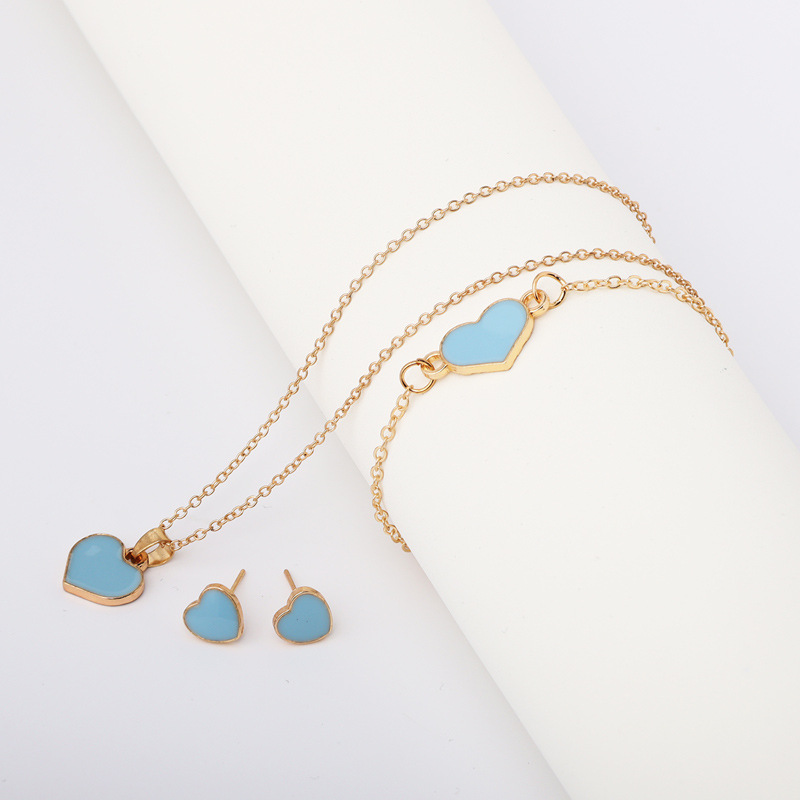 Европейские и американские трансграничные горячие продажи персикового сердца набор ювелирных изделий модный простой дикий браслет часы аксессуары ювелирные изделия производители оптом