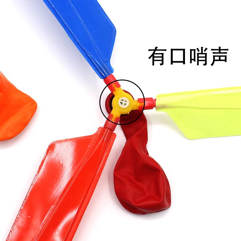 将三片螺旋浆的插口向上组装,将气球套在蓝色塑料管上吹鼓并捏紧气球,再把螺旋桨三通套紧在蓝色塑料管上,接着夹住气球直升机与水平面处放手飞行,随即即可向上飞行,可飞几米高,并且在飞行途中发出悦耳的哨子声。下面有具体的视频哦!!