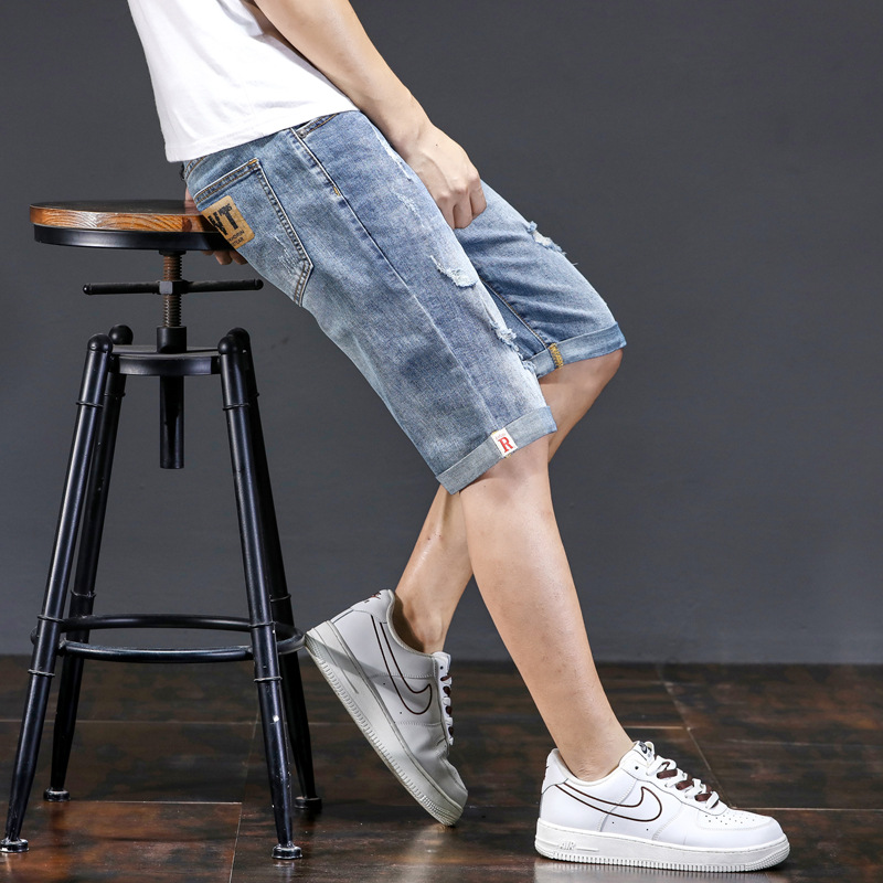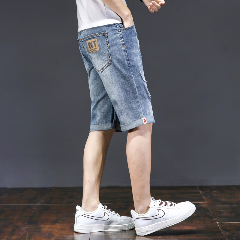 Трансграничные прорывы мужские джинсовые шорты прилив, свободная пятеро, летняя тонкая повседневная дыра, 5 очков брюки мужчины