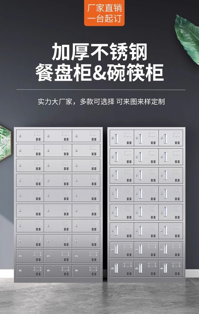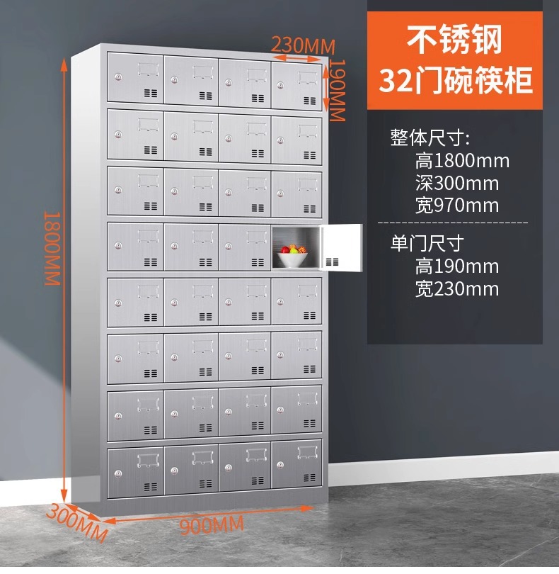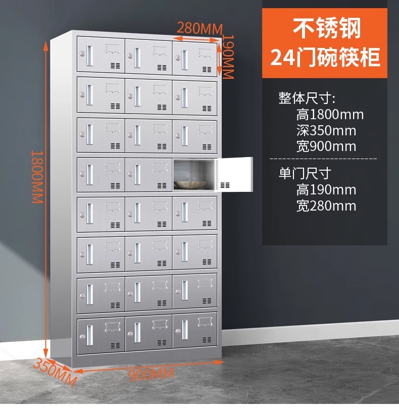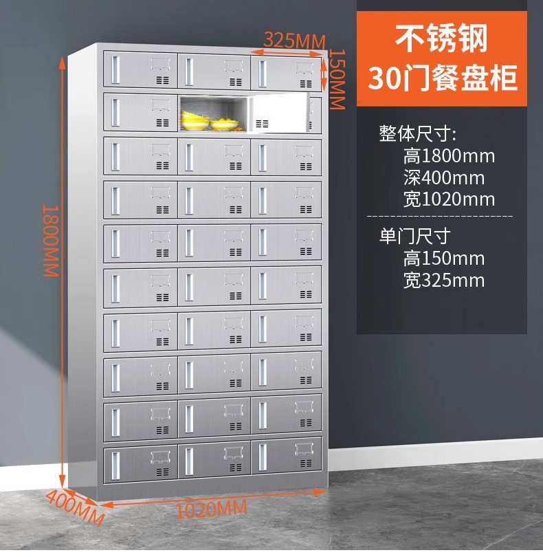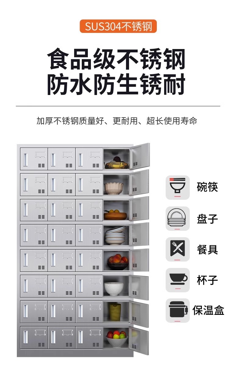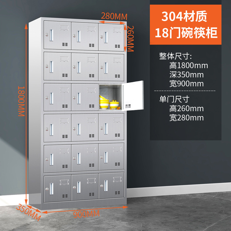 304不锈钢碗柜餐盘柜多门饭盒存放柜员工餐厅带门碗筷收纳柜厂家