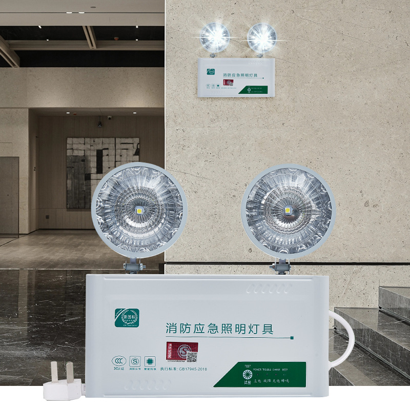 Новый национальный стандарт, пожарное аварийное освещение, двойная налобная лампа, светодиодная перезаряжаемая аварийная лампа для выхода на выход