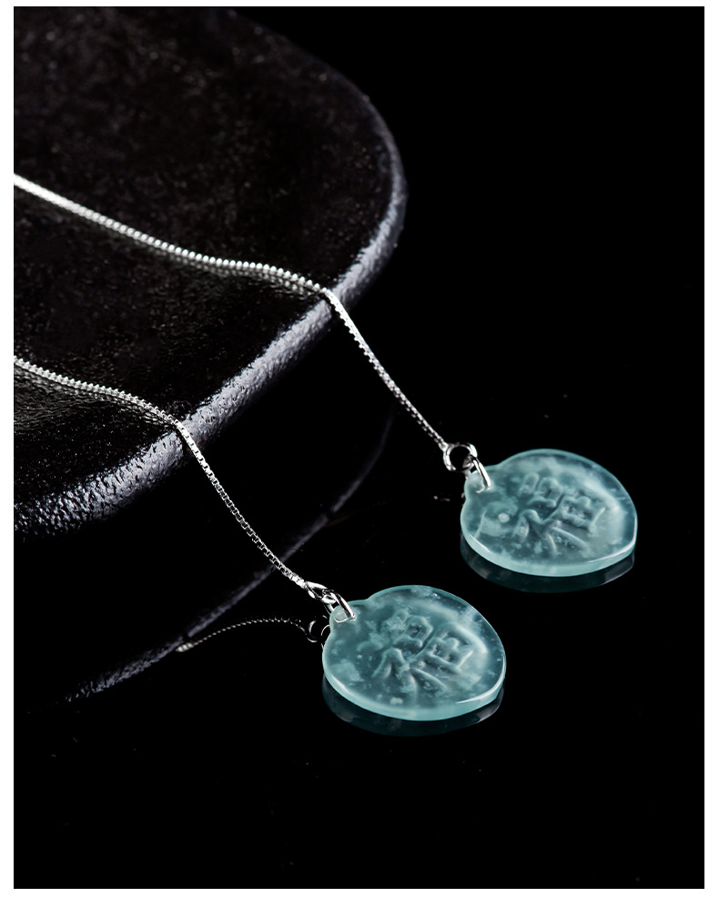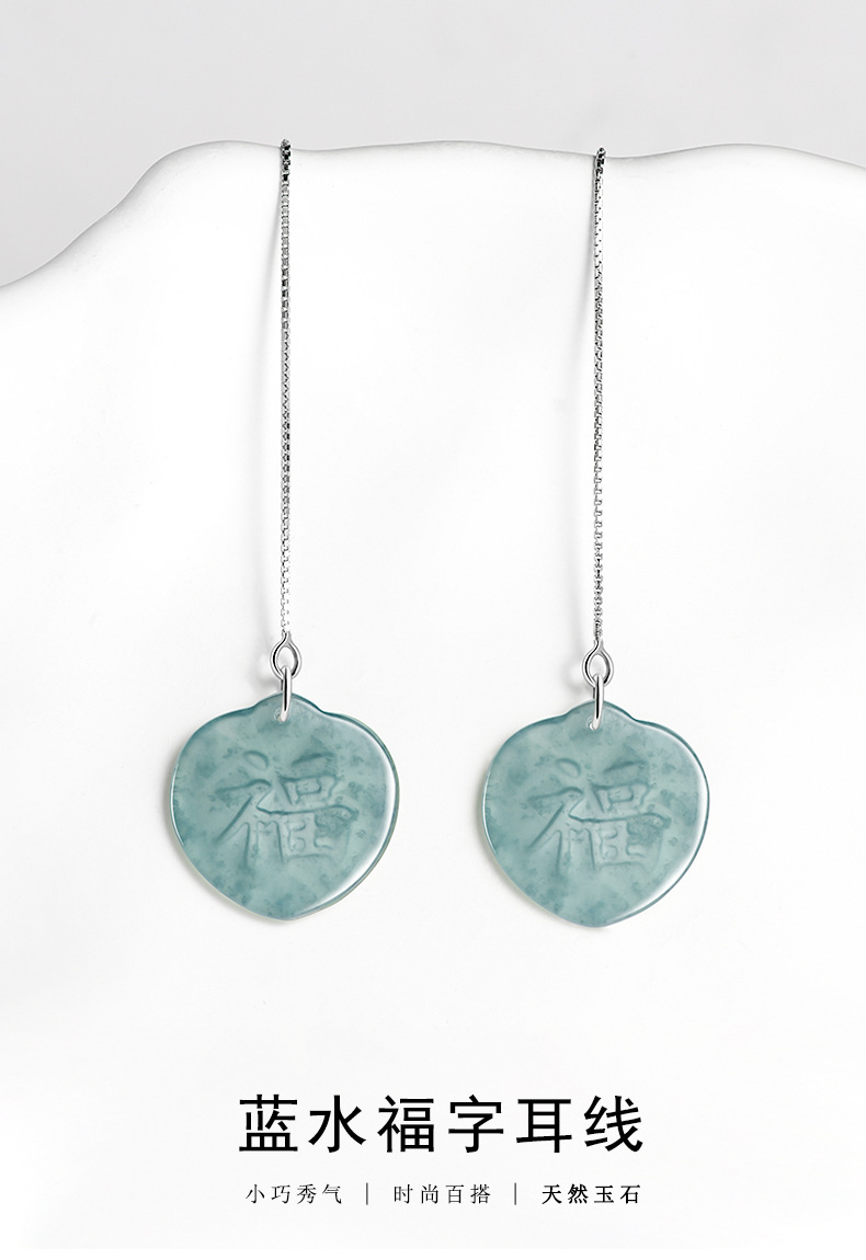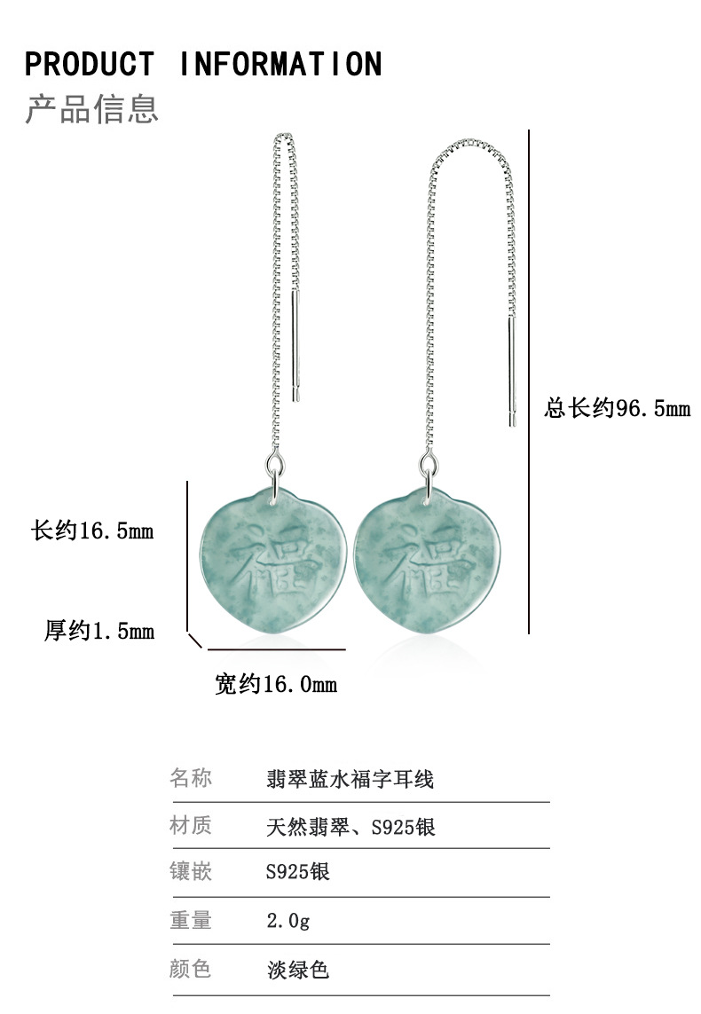 Натуральный изумруд A грузовой синий водный благословенный ушной провод S925 серебряный инкрустированный ледяной камень нефритовый женский высококачественный серьги-серьги