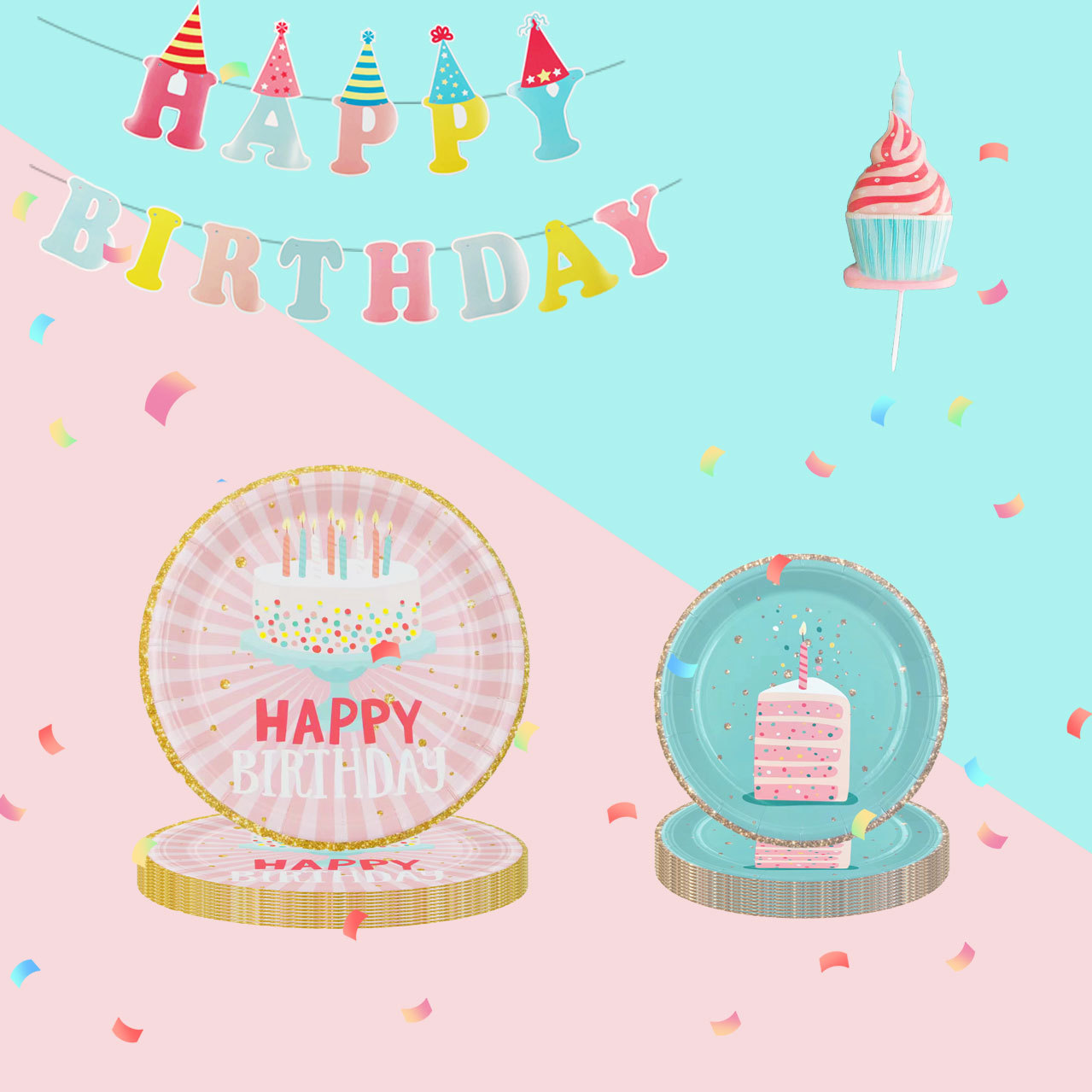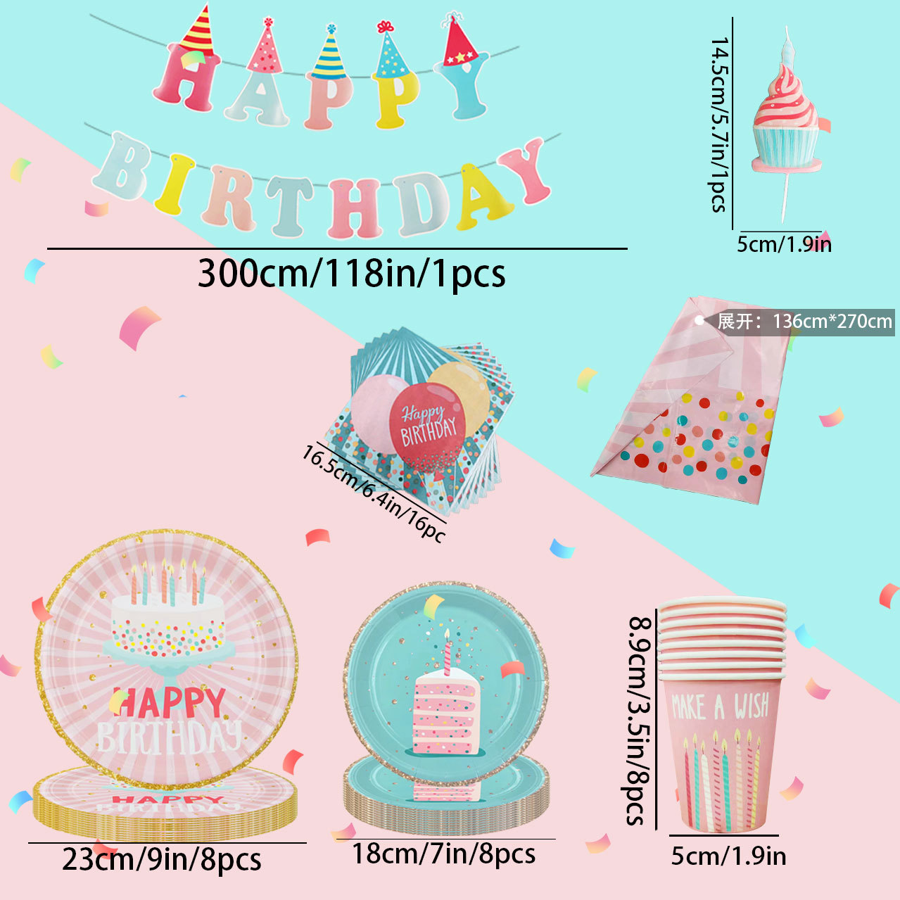 Amazon бумажный лоток бумажный стаканчик трансграничный новый день рождения торт воздушный шар 350 г печать одноразовый набор для вечеринок