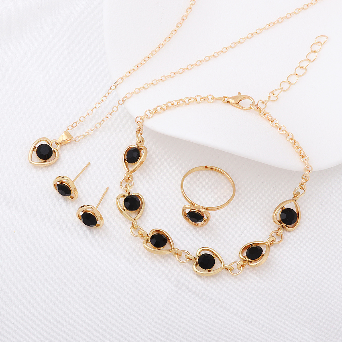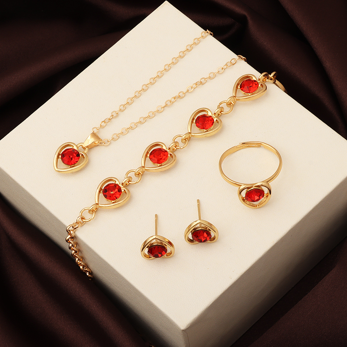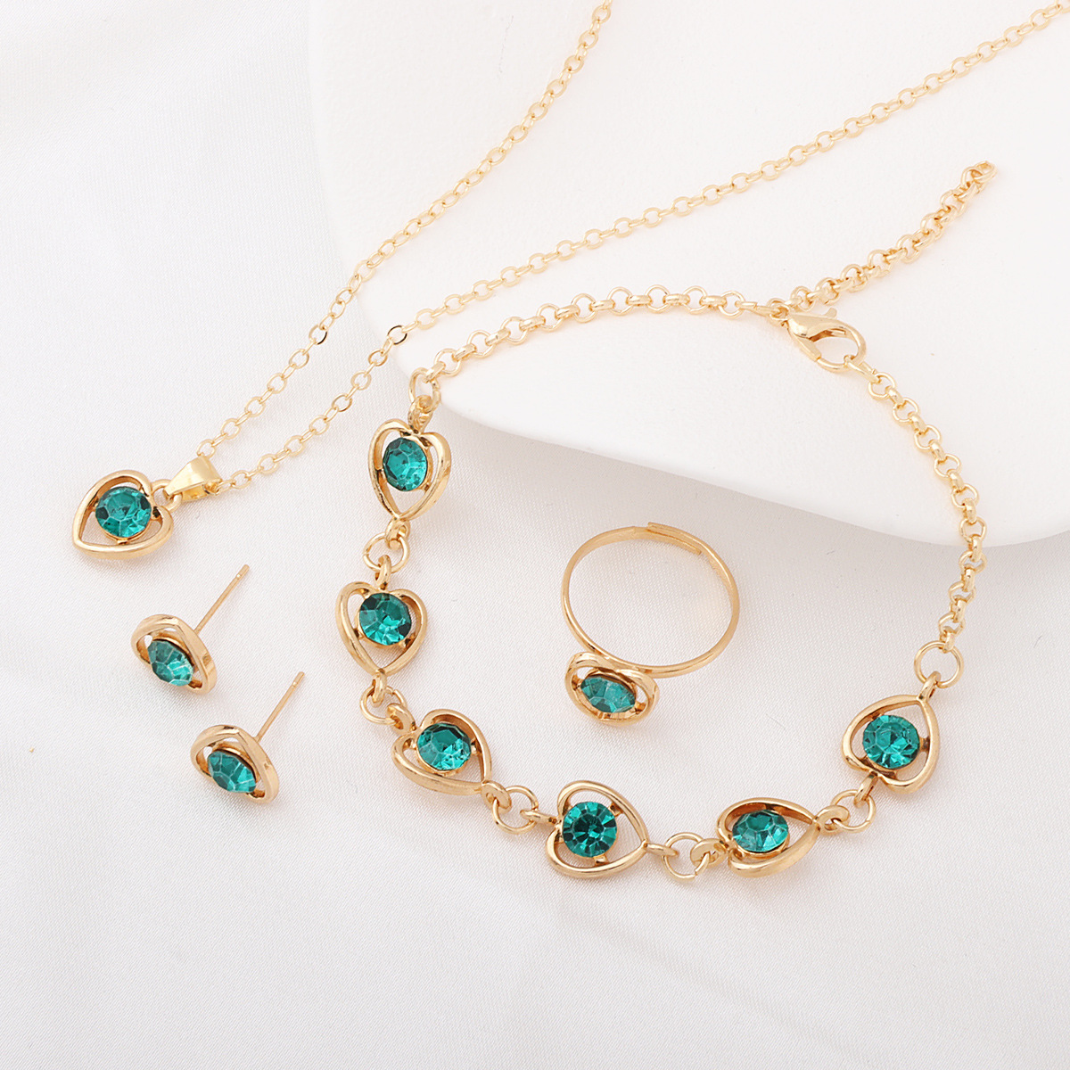 Amazon трансграничный европейский и американский кристалл любви ювелирные изделия модный темперамент персиковое сердце ожерелье серьги кольцо браслет набор из четырех частей
