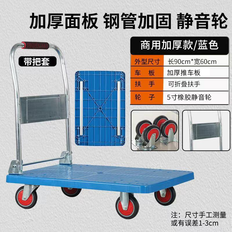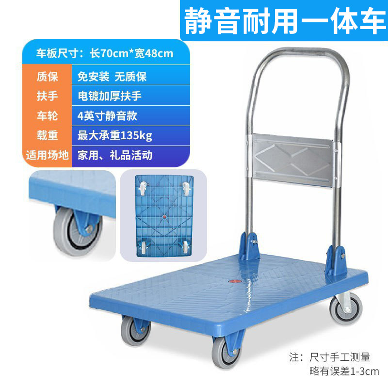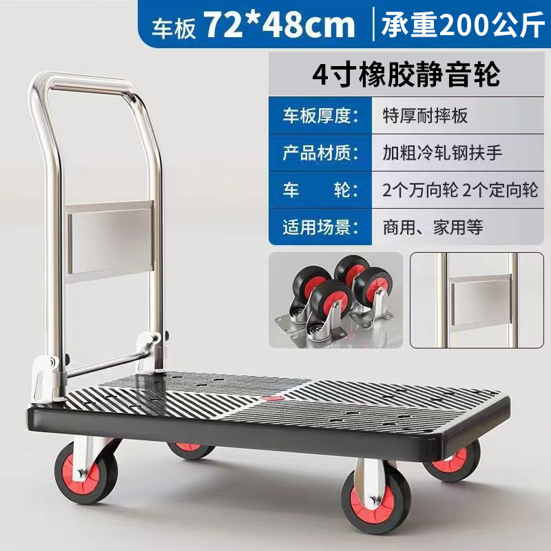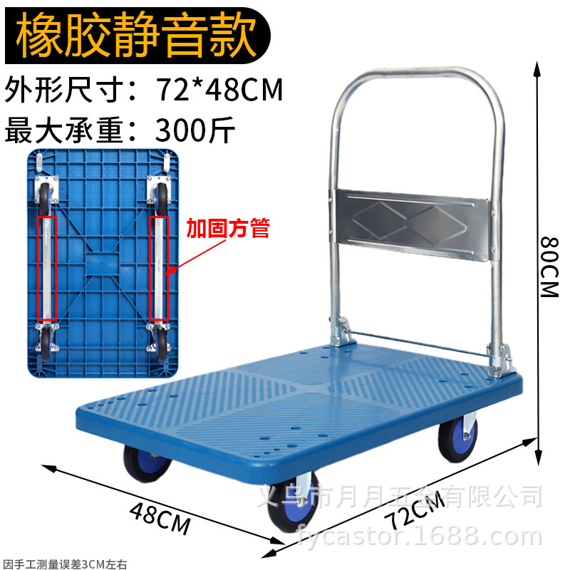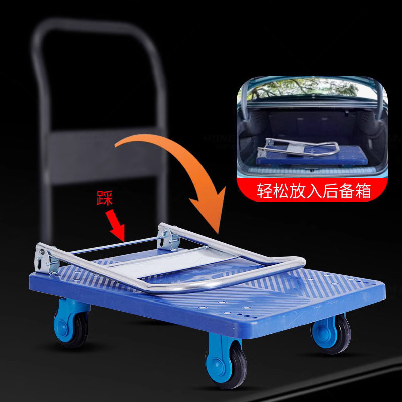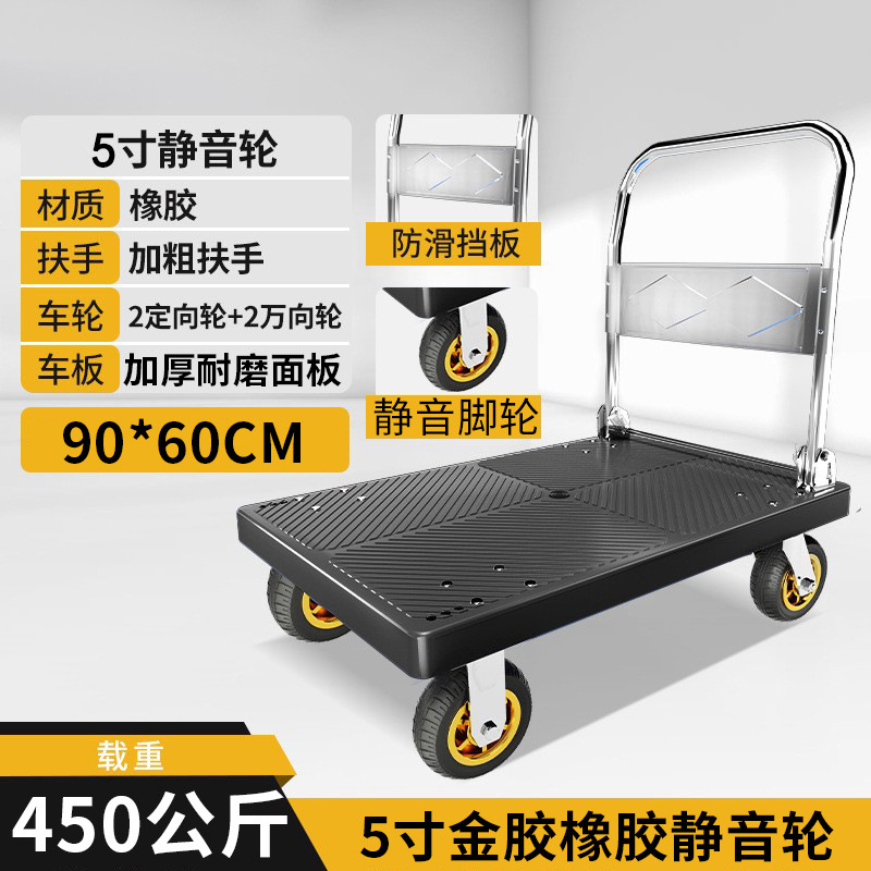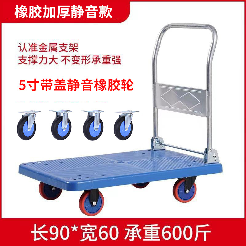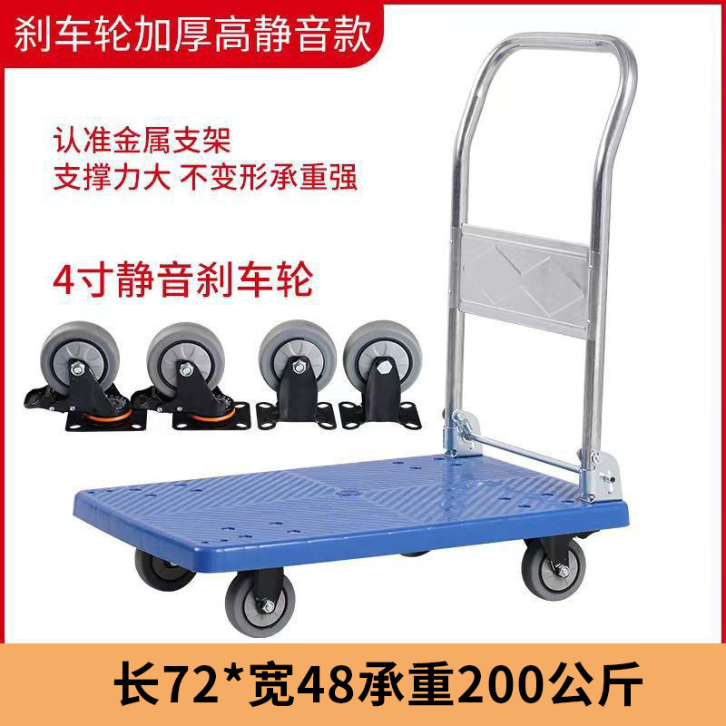 Маленькая тележка для вытягивания складной бесшумная тележка плоская тележка для домашнего грузовая прицеп курьерская тележка