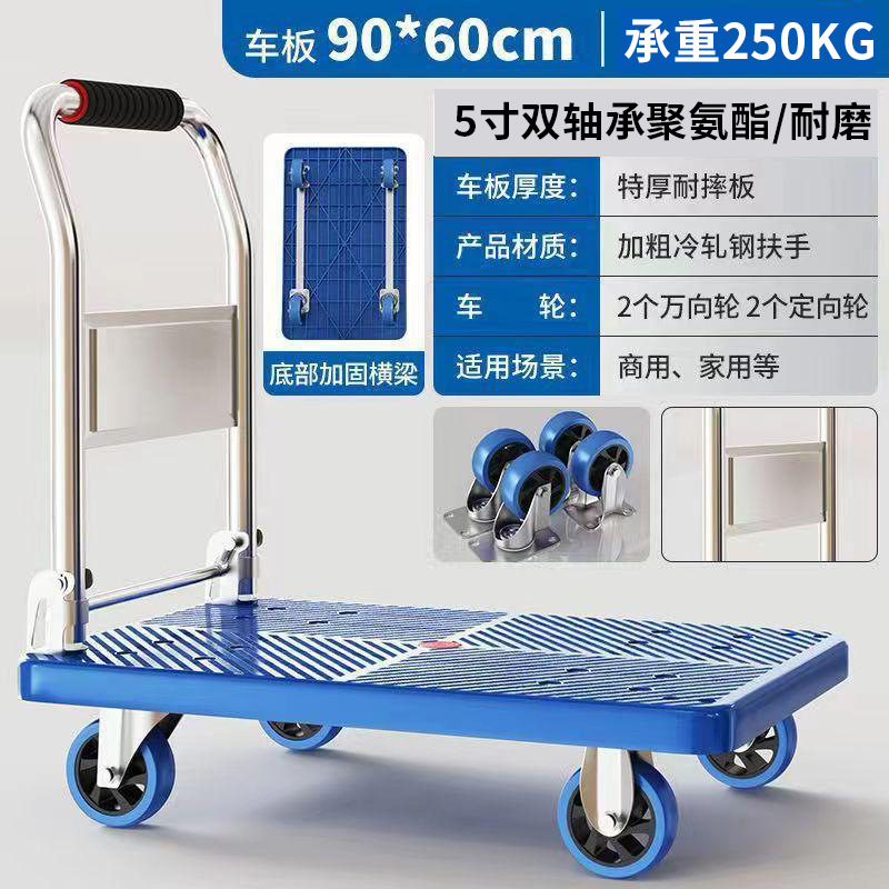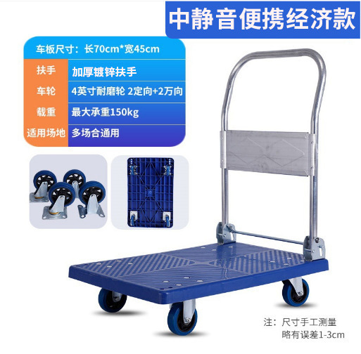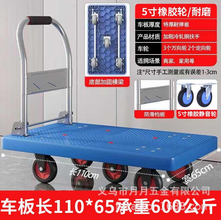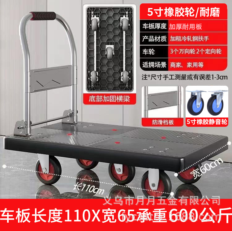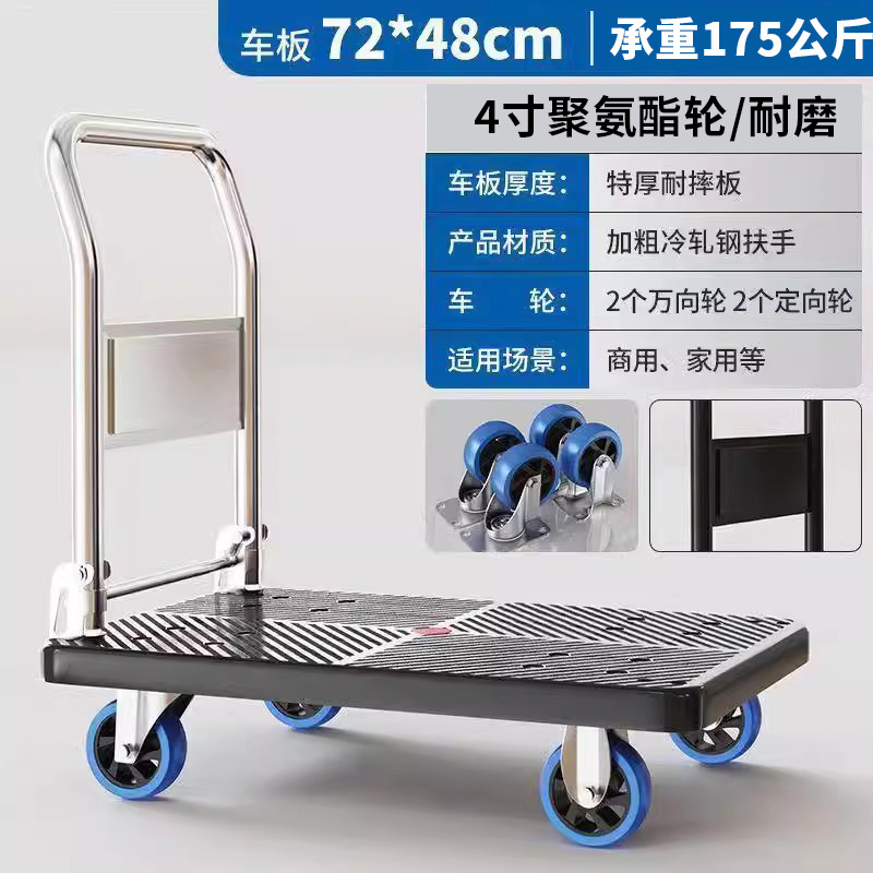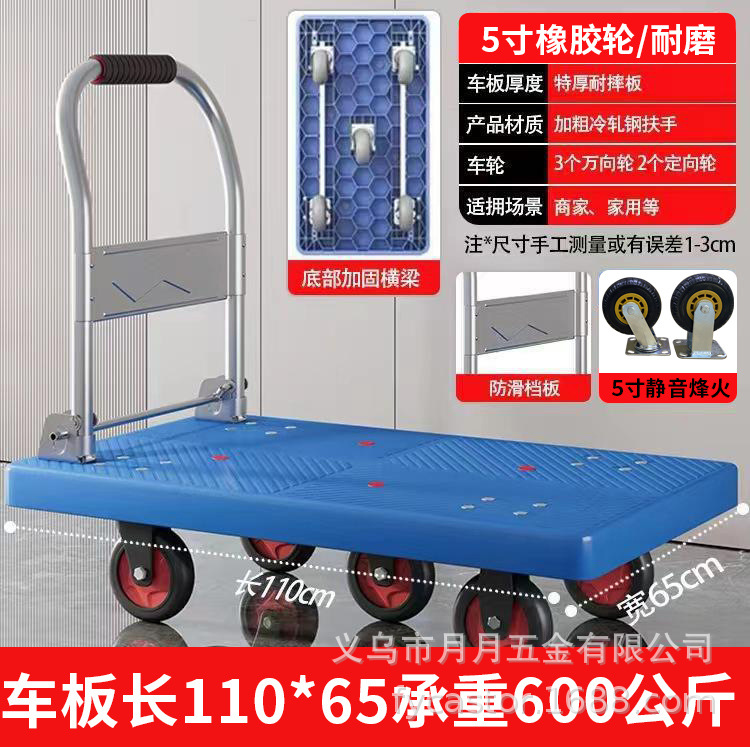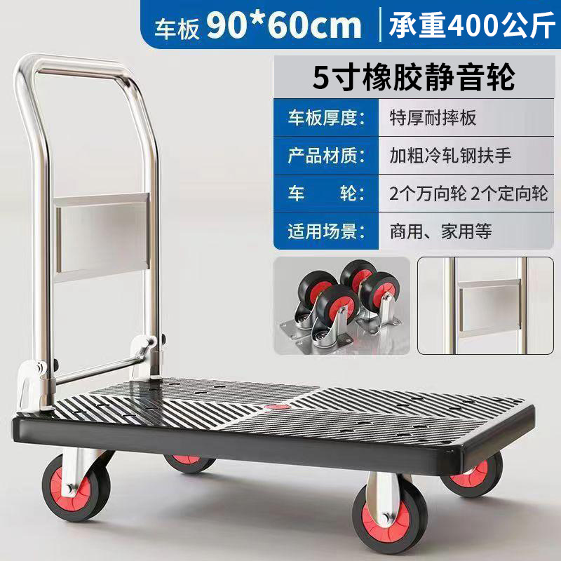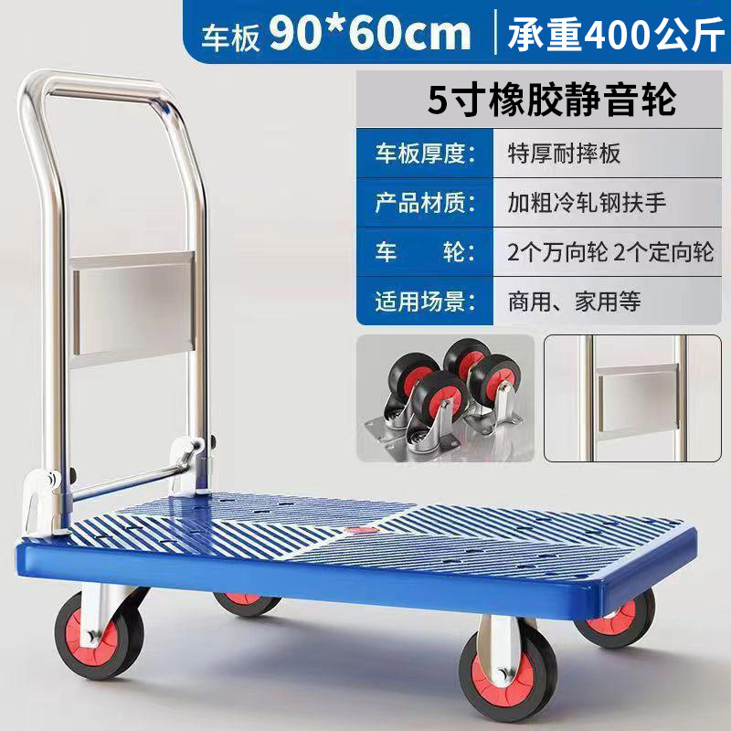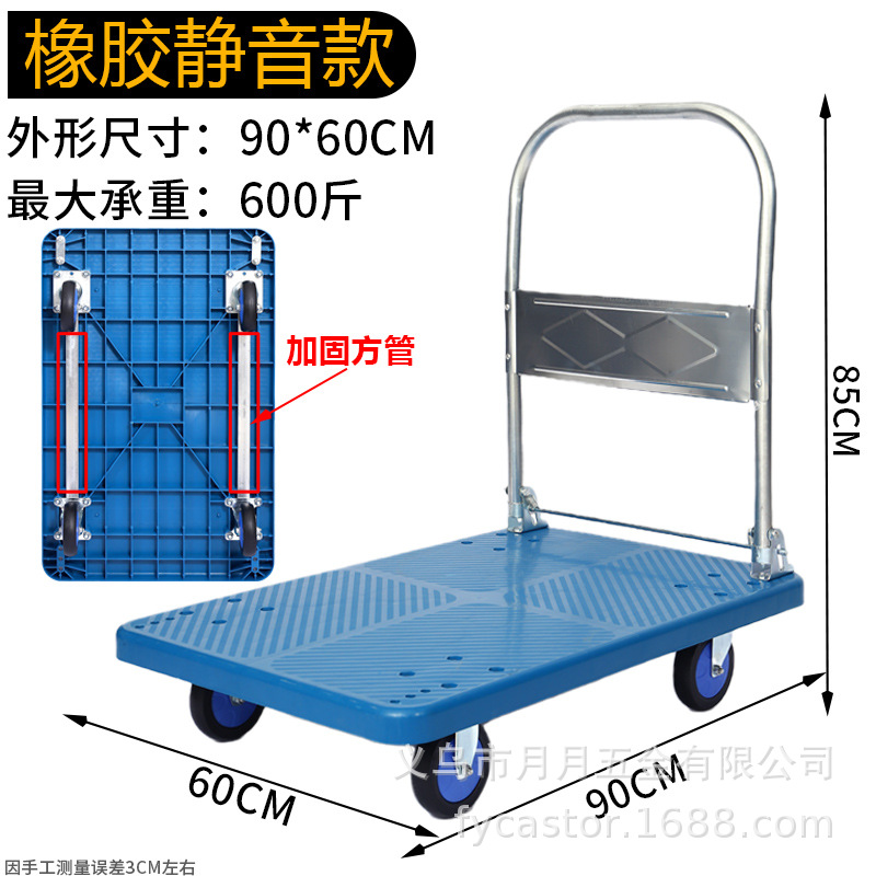 Маленькая тележка для вытягивания складной бесшумная тележка плоская тележка для домашнего грузовая прицеп курьерская тележка