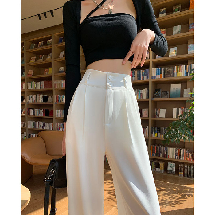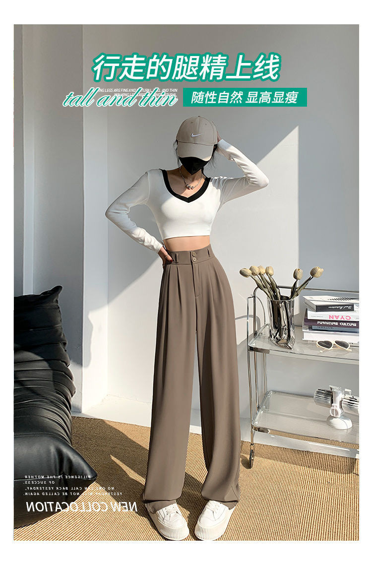 Трансграничные 2024 летние тонкие узкие брюки с широкими ногами женские высокие талии