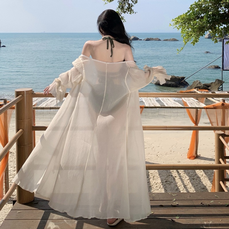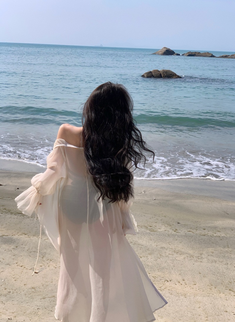 Настоящий снимок праздничного стиля, крутой и элегантный солнцезащитный кардиган для женщин, легкая и дышащая французская летняя пляжная солнцезащитная куртка