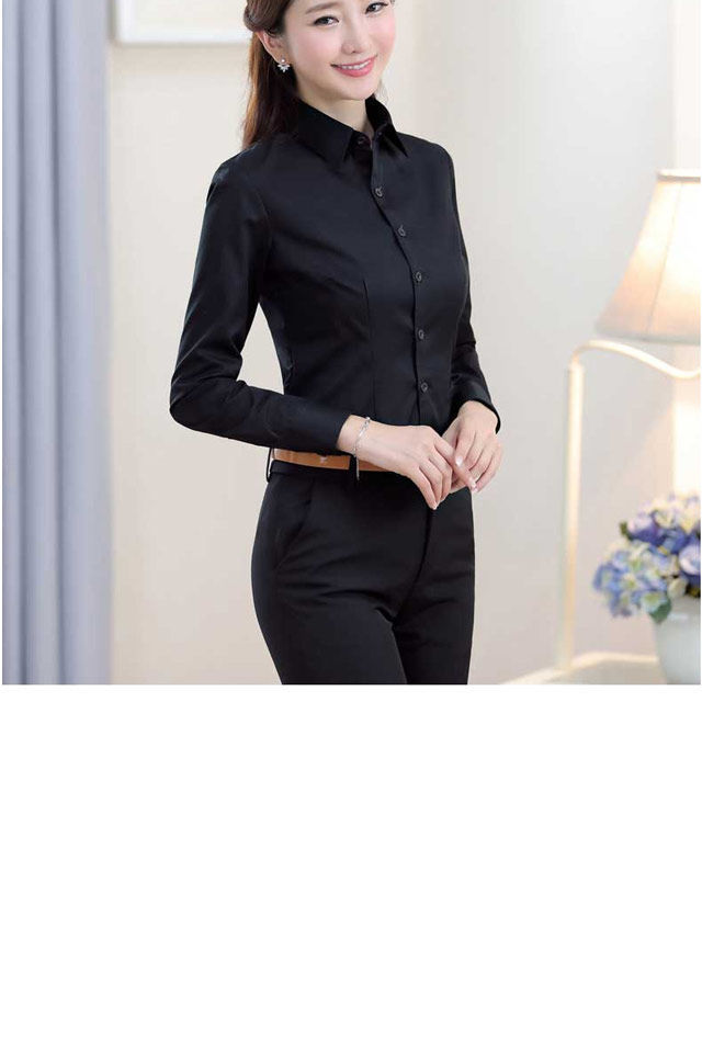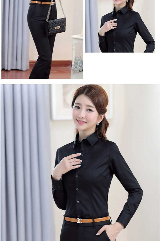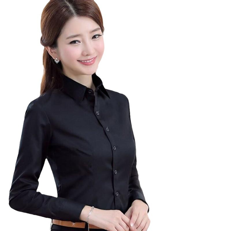 Весенний и осенний новый черный рубашка женская корейская версия тонка с длинными рукавами рубашка рабочая одежда
