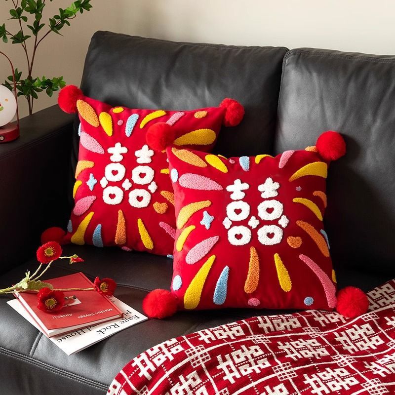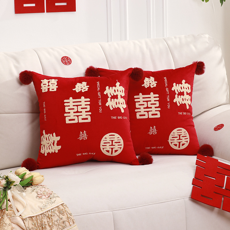 Свадебные подушки Пара праздничных красных подушек для гостей диван для новобрачных подушки для свадебных украшений