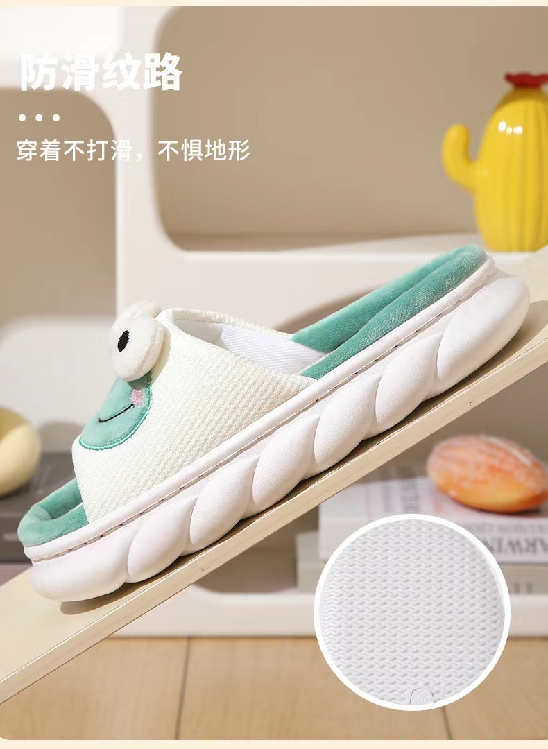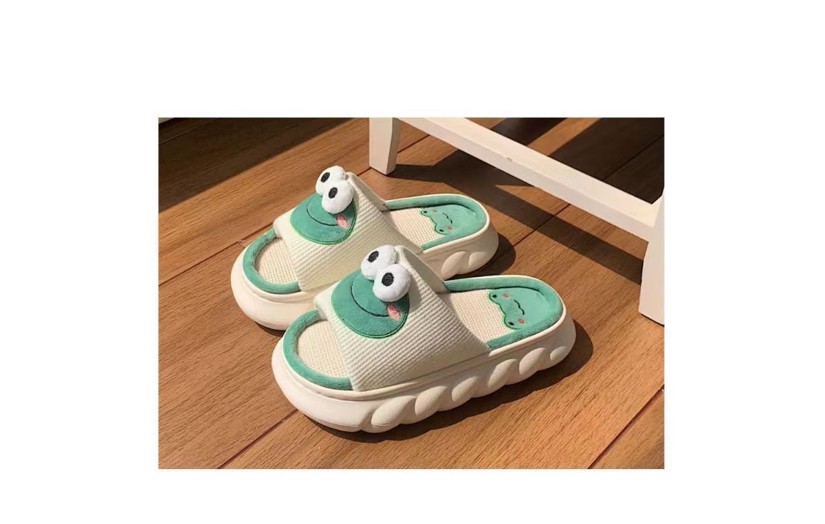 Новые весенние летние мальчики и девочки дома пара льняных тапочки Four Seasons Нескользящая толстая подошва мультяшная лягушка холодная девушка