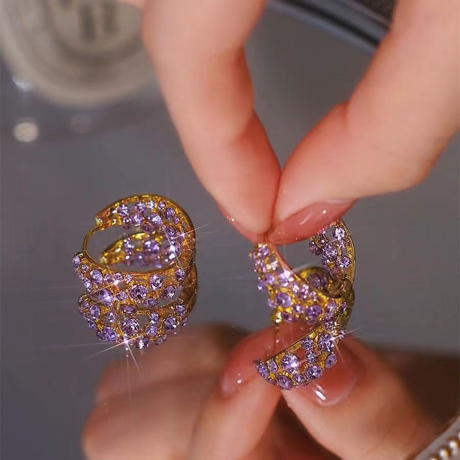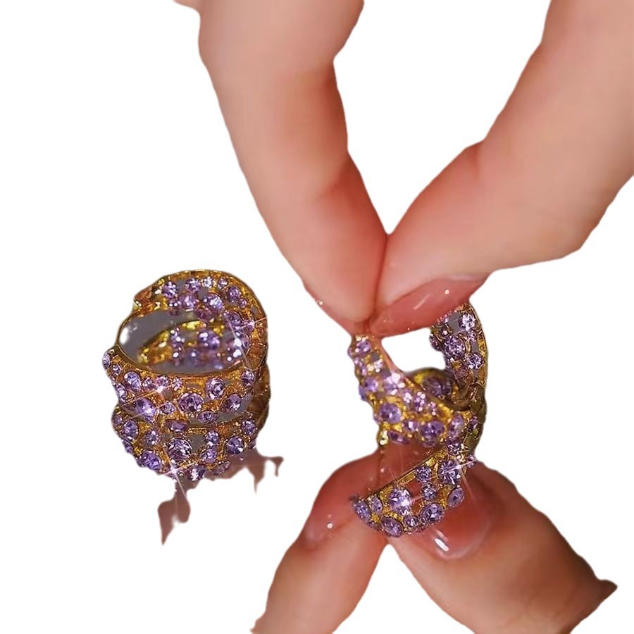 Фиолетовый полный бриллиант циркон серьги женский 2024 новый ушной круг нишевая мода серьги гвоздики легкие и роскошные премиум-ощущения оптом может быть заменен