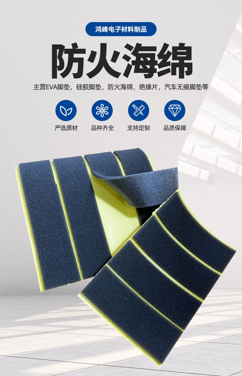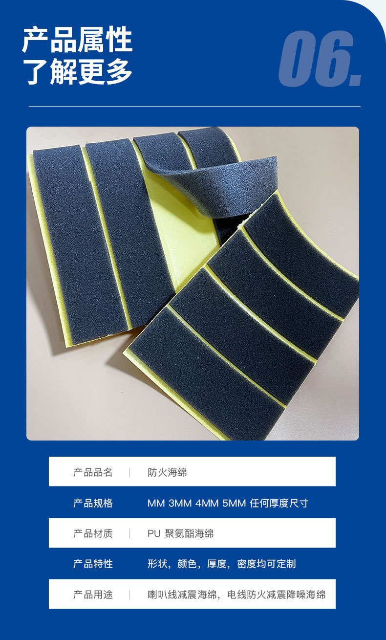 Заводская кастомизация огнестойкой губки высокой плотности, упаковочная губка для жгутов проводов, кастомная самоклеящаяся полоса из ПУ-губки