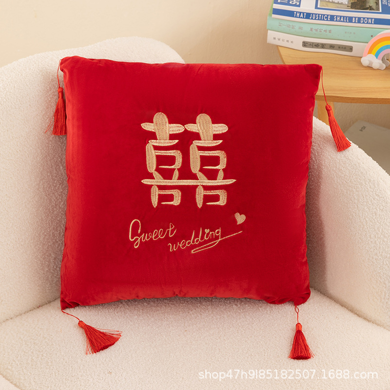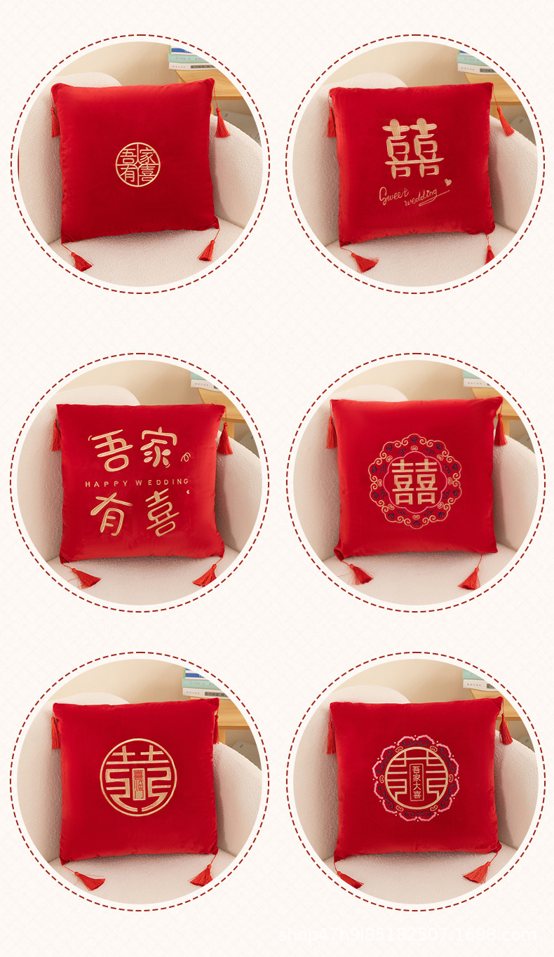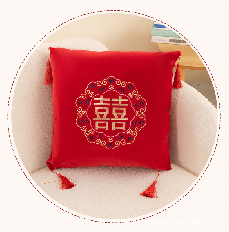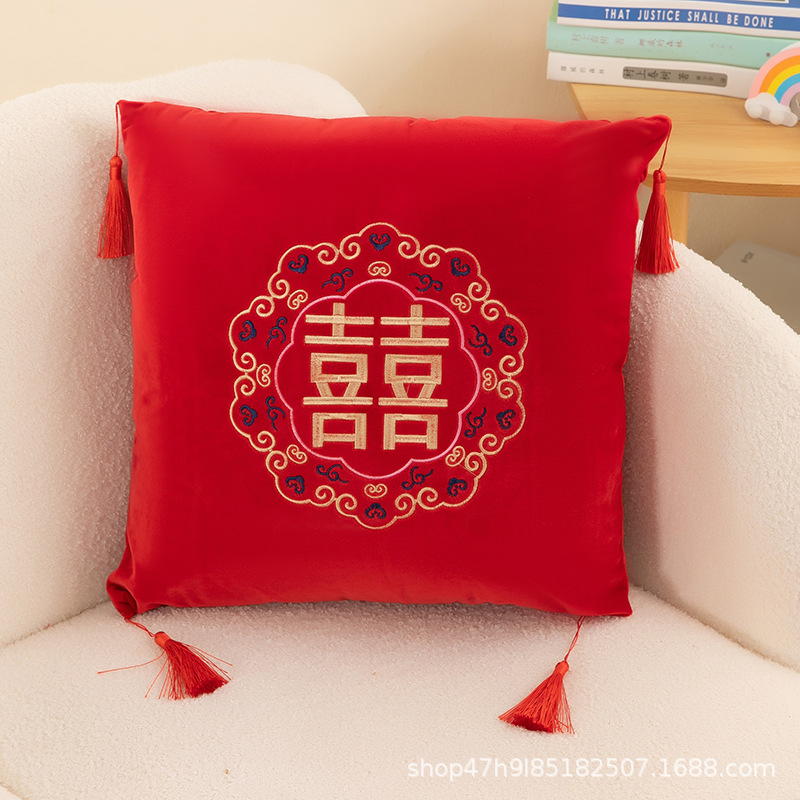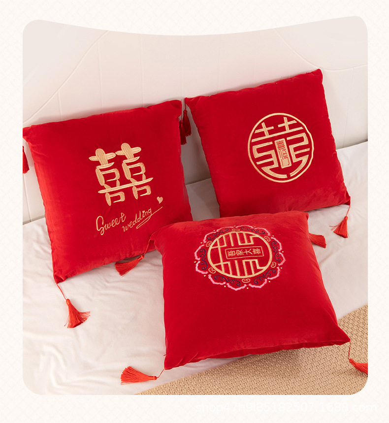 Китайская красная двойная счастлива трехмерная вышитая свадебная подушка декоративная подушка свадебная подушка свадебная подушка свадебная комната подарочная подушка для спальни