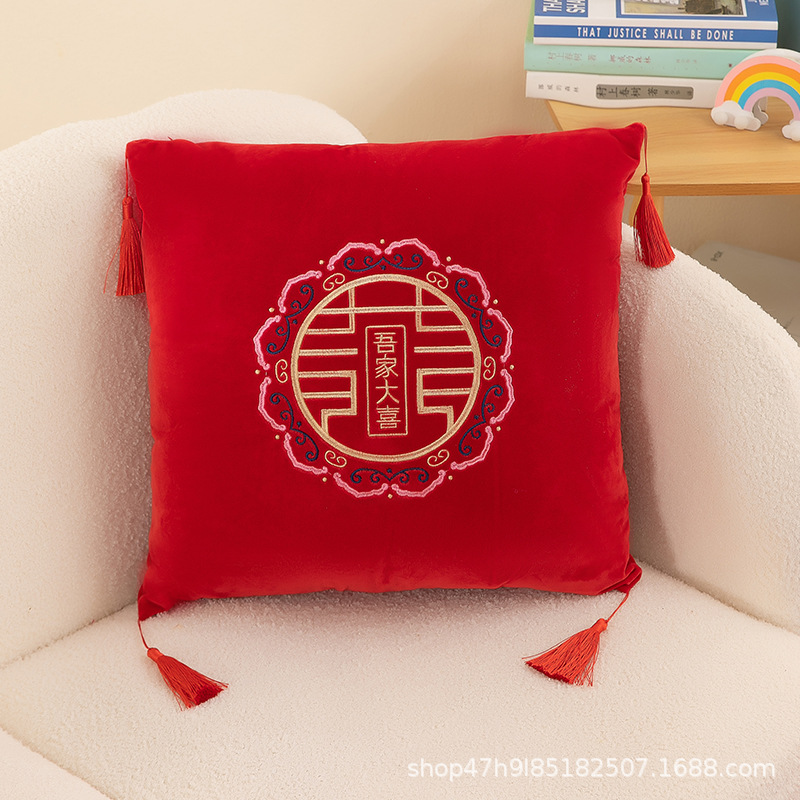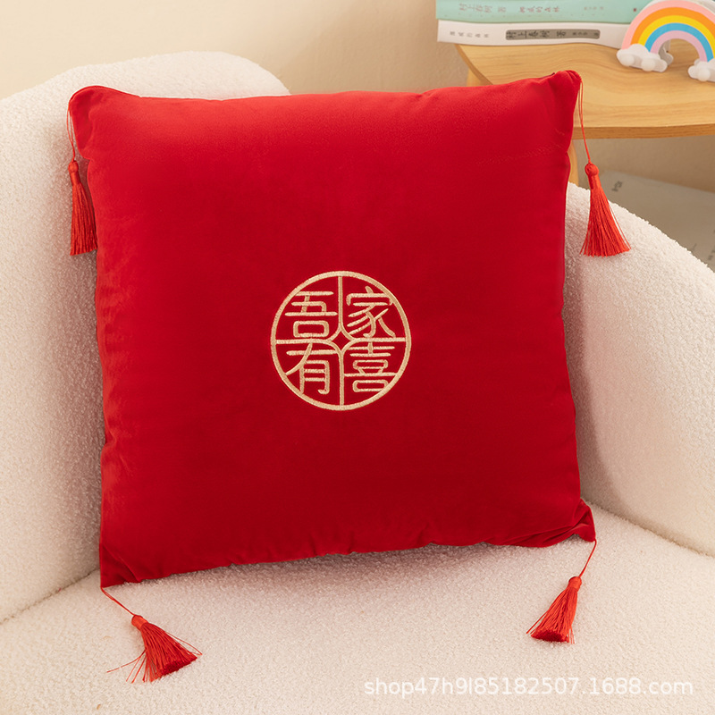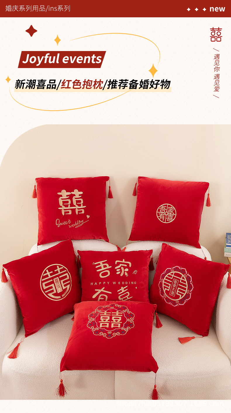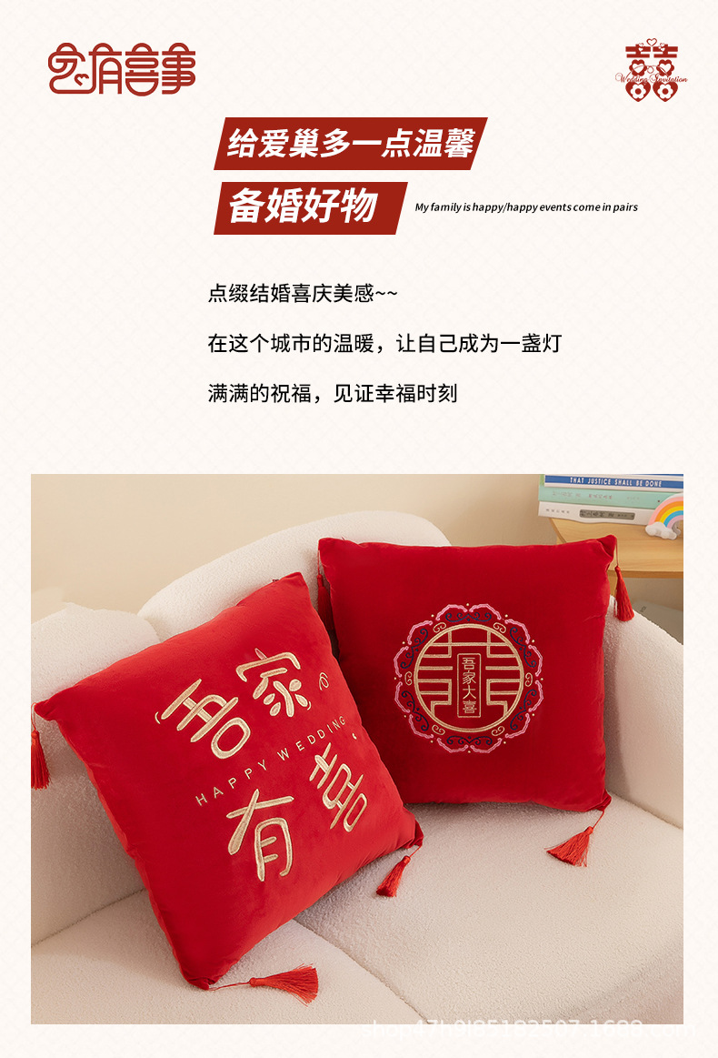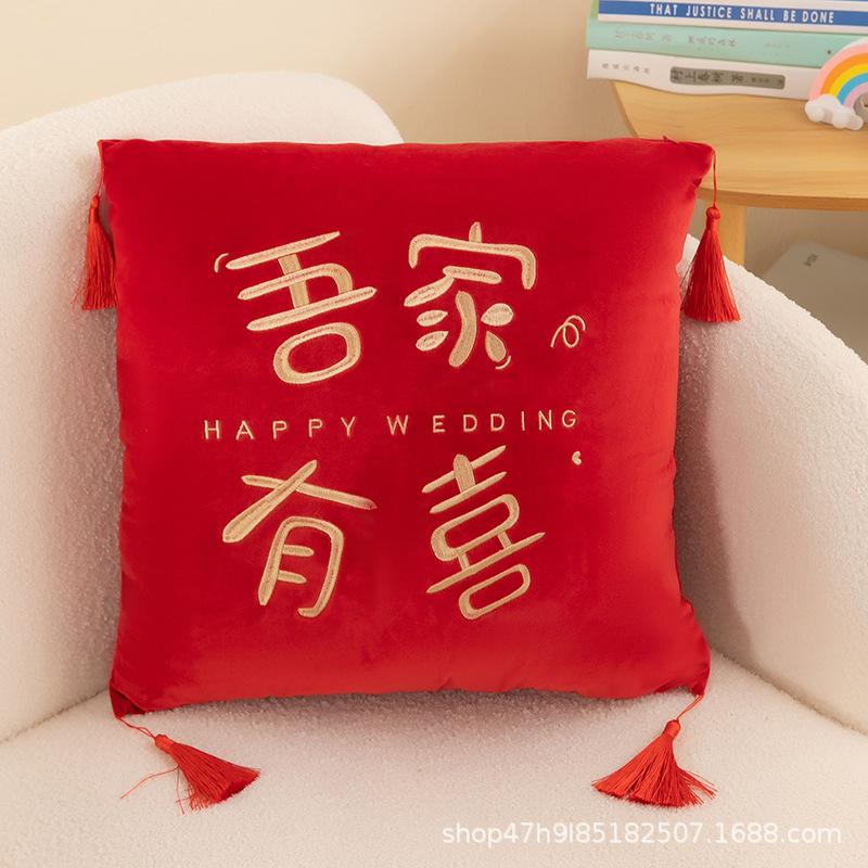 Китайская красная двойная счастлива трехмерная вышитая свадебная подушка декоративная подушка свадебная подушка свадебная подушка свадебная комната подарочная подушка для спальни