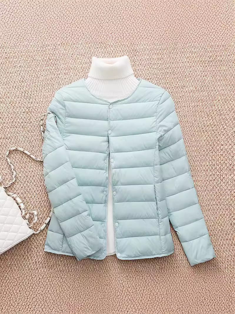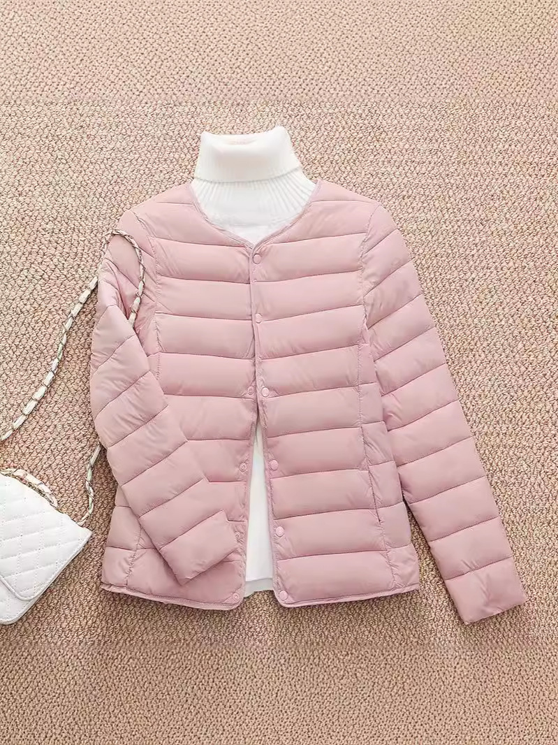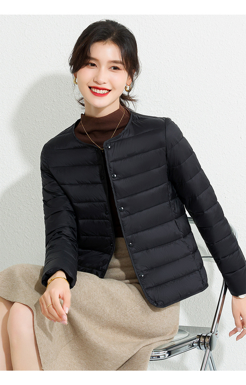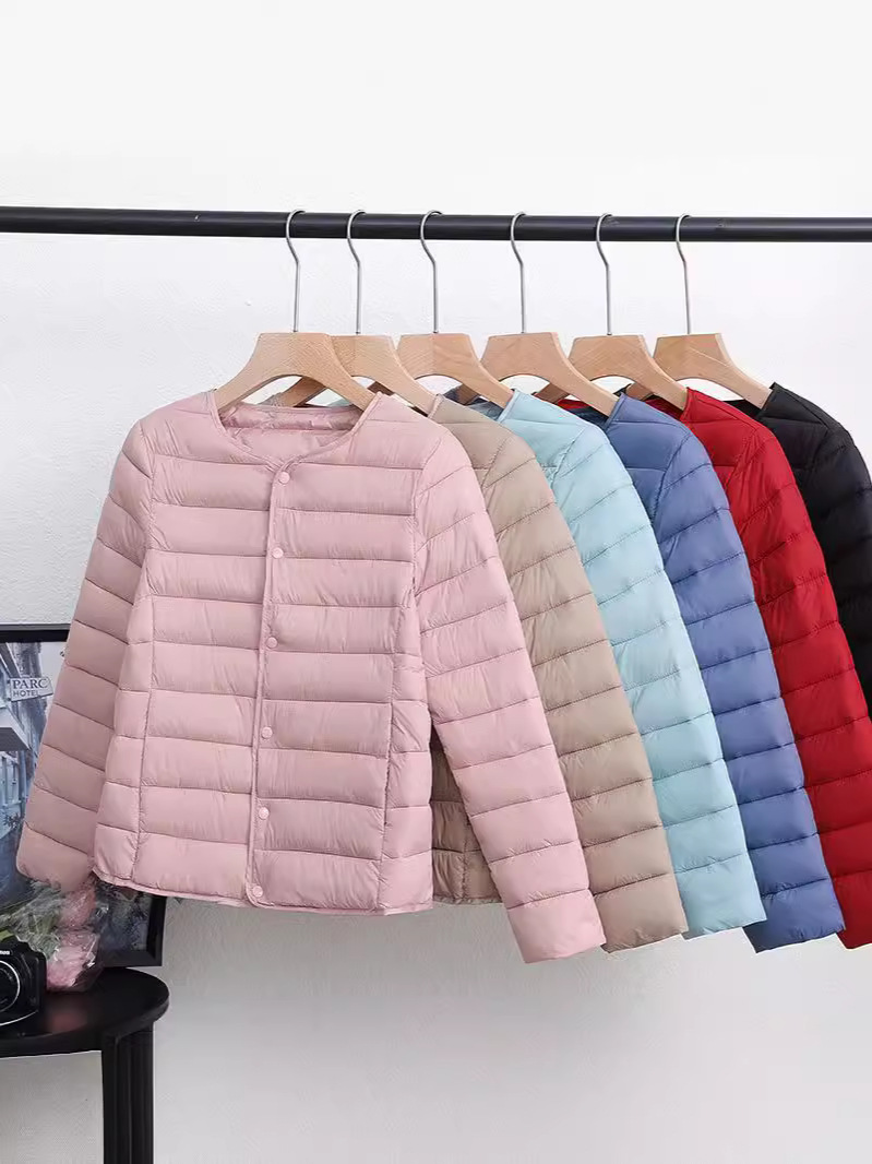 Хлопковая одежда женская короткая легкая пуховая хлопчатобумажная без воротника с длинными рукавами