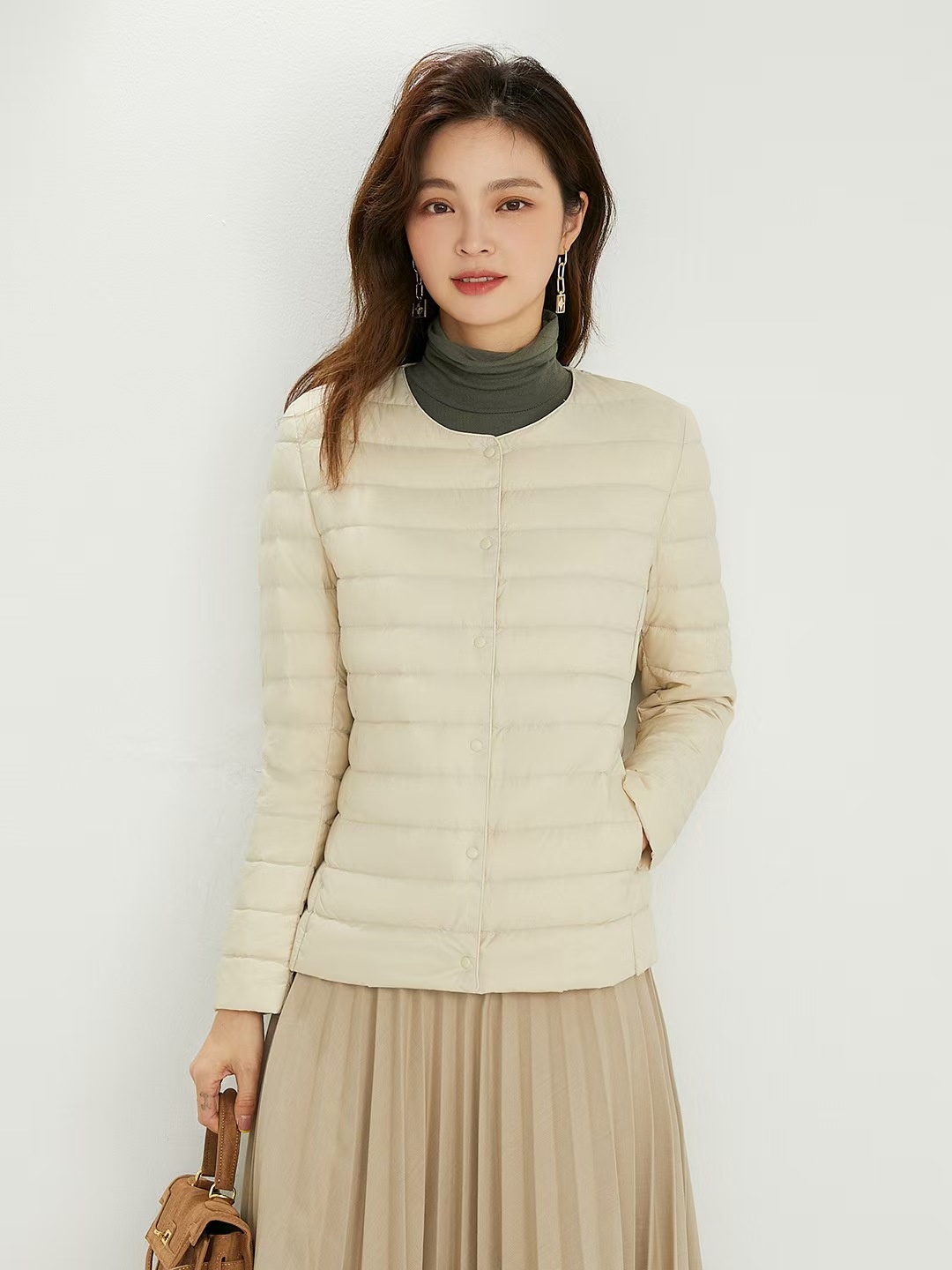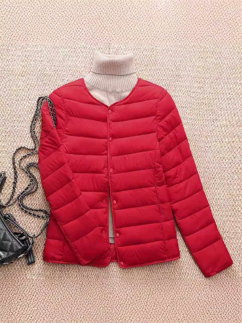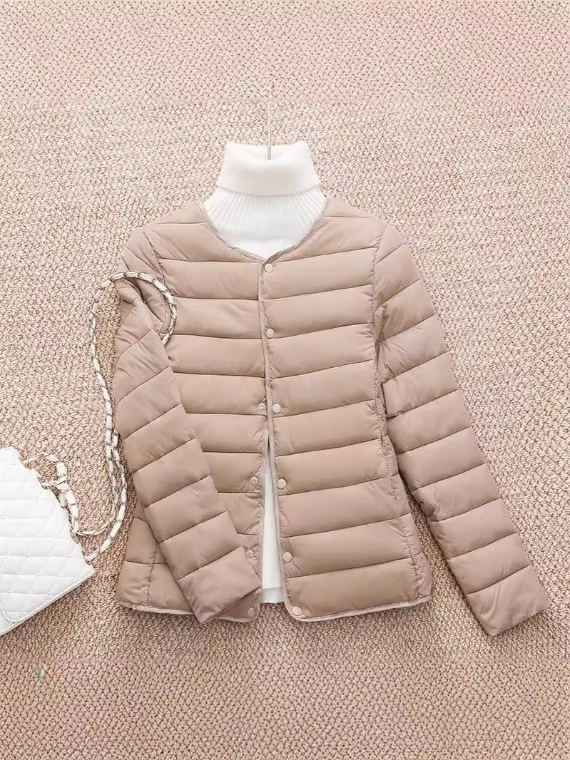 Хлопковая одежда женская короткая легкая пуховая хлопчатобумажная без воротника с длинными рукавами