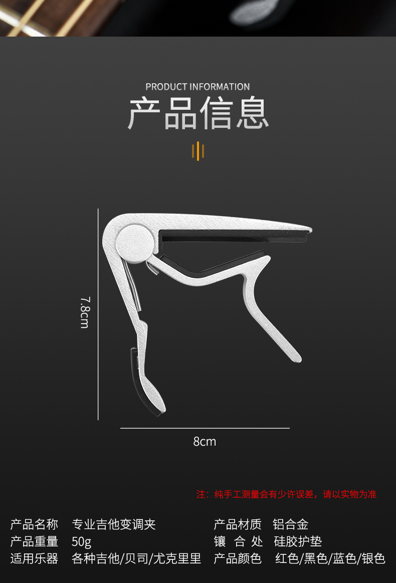 Фольклорная гитара CAPO Классическая акустическая гитара Металлический тюнерный зажим Алюминиевый гитара Аксессуары для гитары