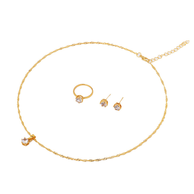 Европейский и американский трансграничный минималистский кулон классический шестикоготный циркон ожерелье женское дикое кольцо серьги 3 комплекта оптом