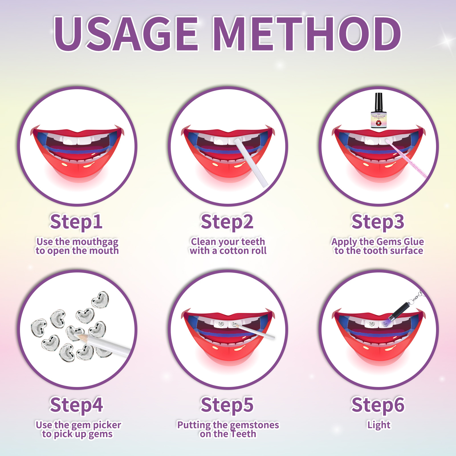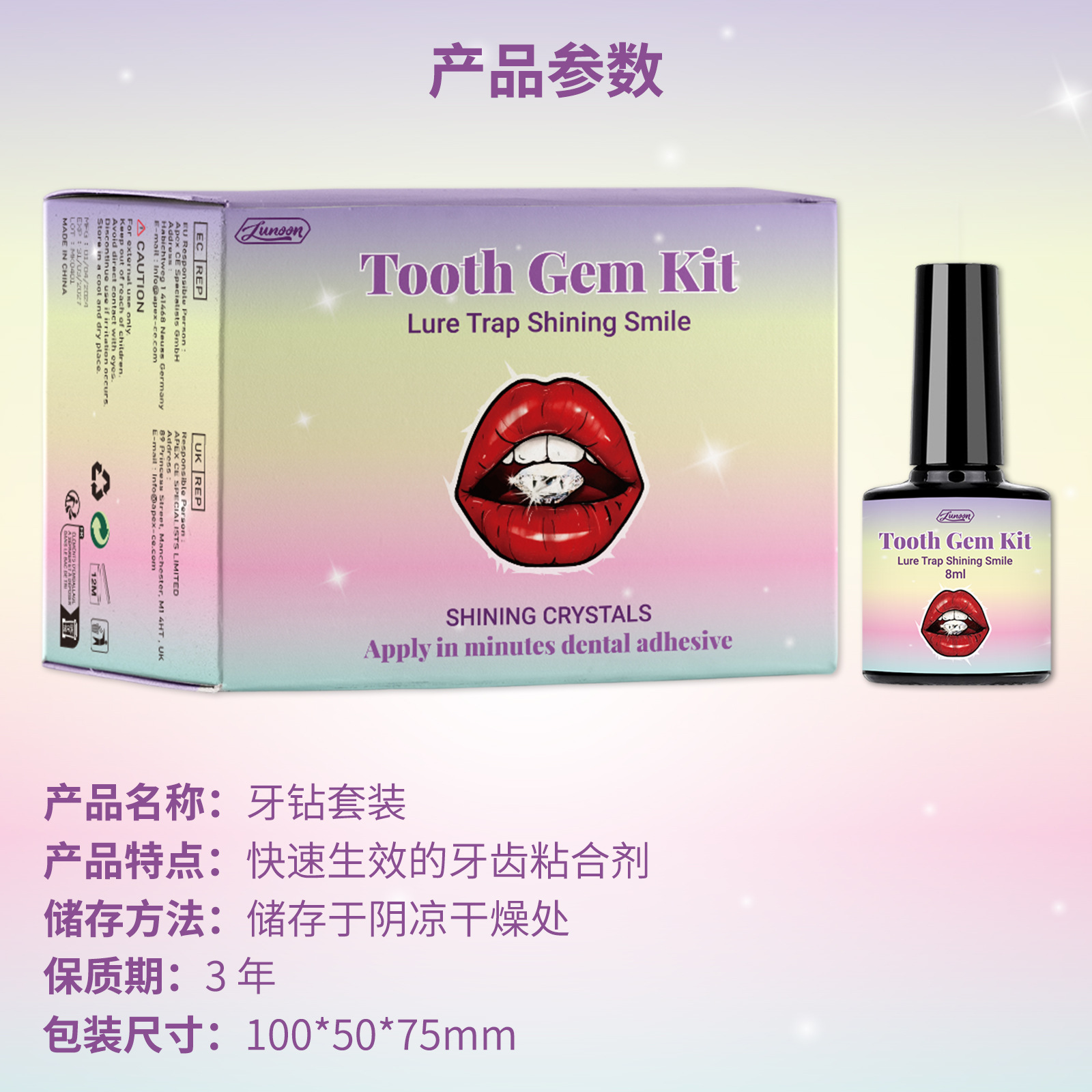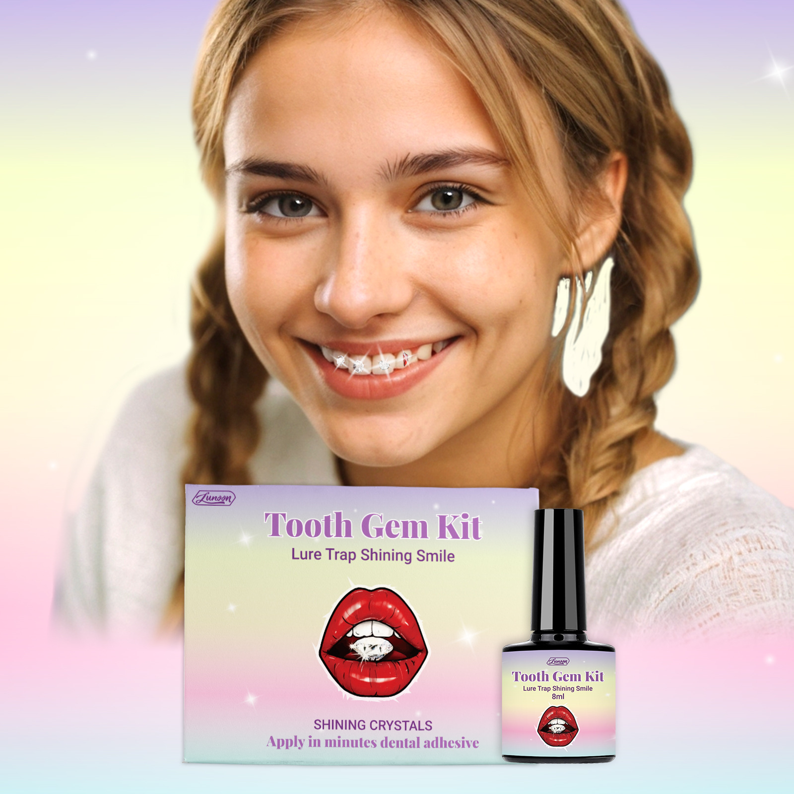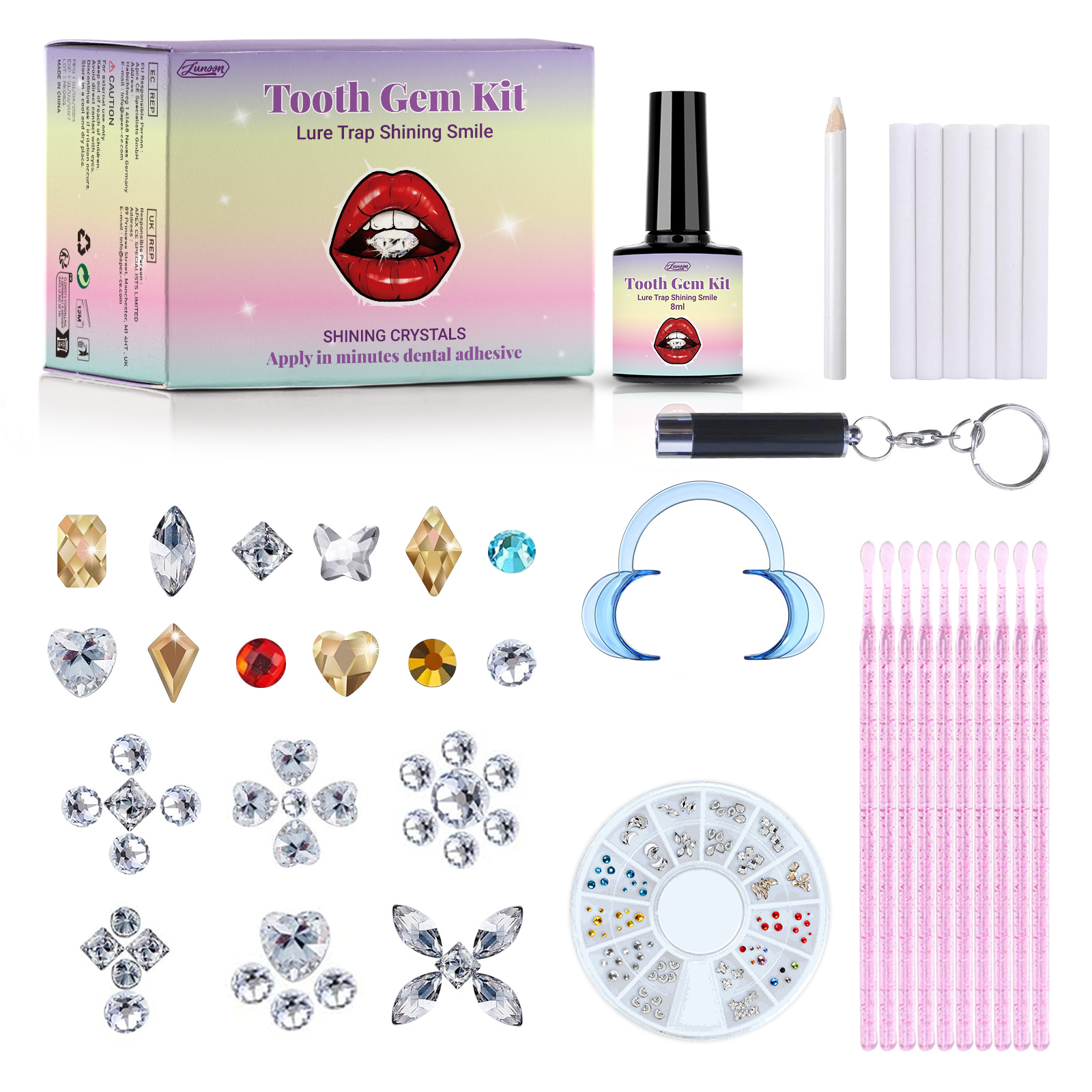 Набор семейных украшений для зубов LUNOON, блестящие наклейки, трансграничная торговля, прочные, легко устанавливаемые, изысканные украшения для зубов.