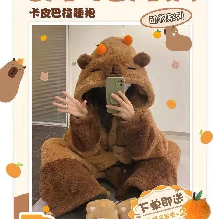 Гадкая рыба динозавр пижама маленькая пчела лиса коралловый бархатный халат Капибара может носить теплую домашнюю одежду для пар