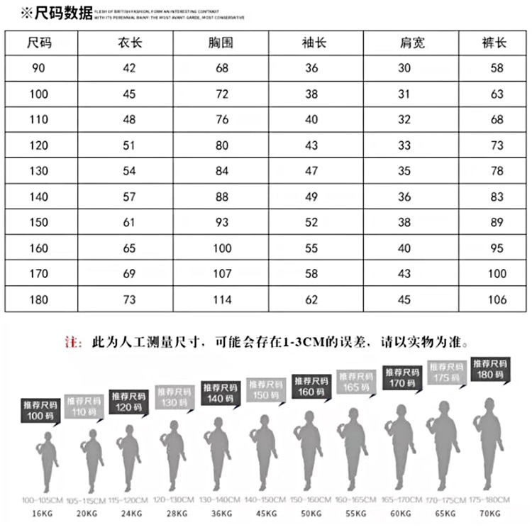 Размер 100 рекомендует рост 86-95.; Размер 110, рекомендуемый рост 96-105.; Размер 120, рекомендуемый рост 106-115.; Размер 130, рекомендуемый рост 116-125.; Размер 140, рекомендуемый рост 125-135.; Размер 150, рекомендуемый рост 135-145.; Размер 160, рекомендуемый рост 145-155.; Размер 170, рекомендуемый рост 155-165.; Размер 180, рекомендуемый рост 165-175.