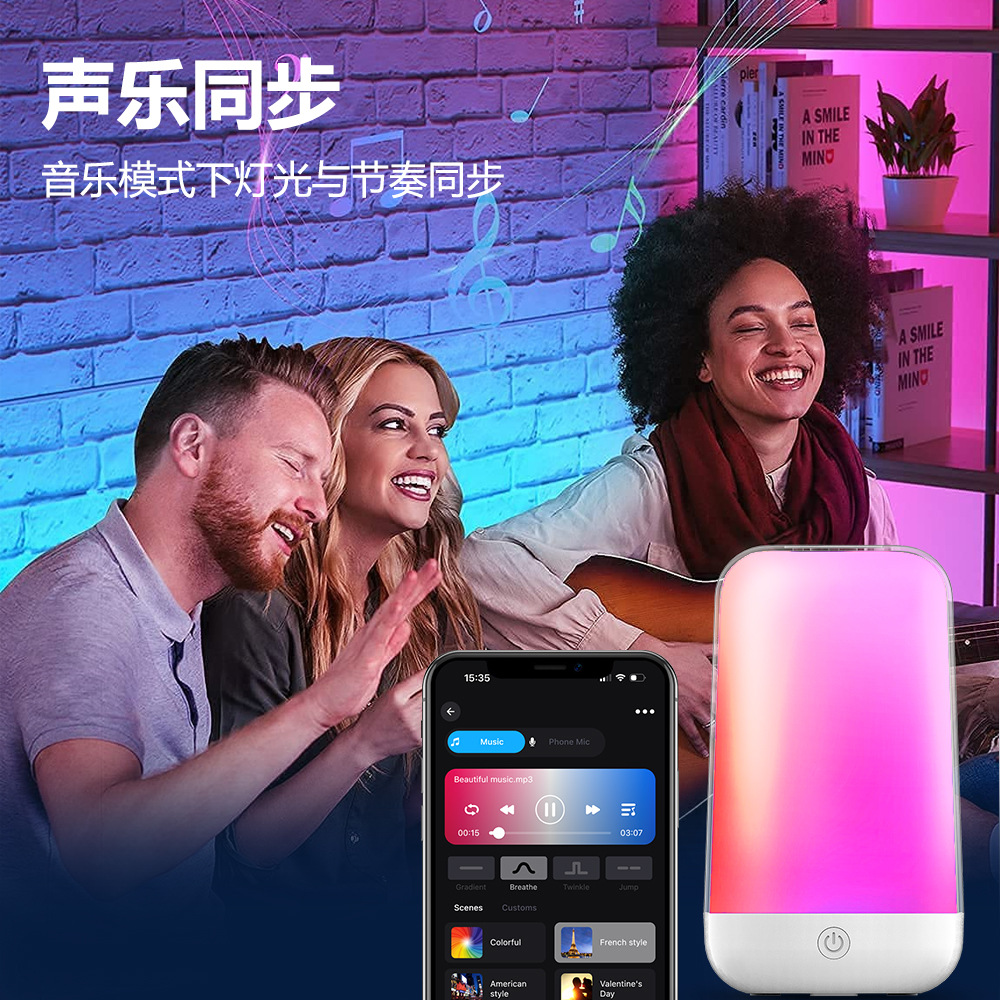 Светодиодный умный прикроватный светильник с сенсорным управлением, ночник, Bluetooth-колонка, фоновая подсветка, активируемая звуком, ритмичный светильник для спальни, светильник для сна
