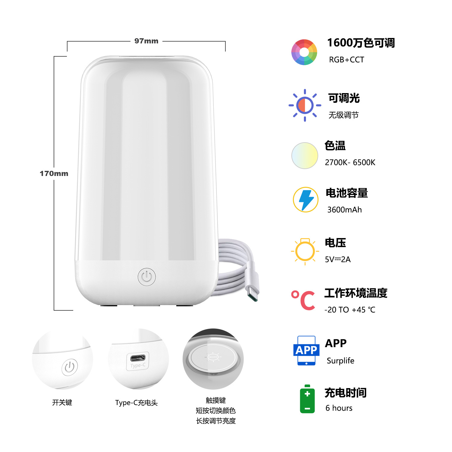 RBGWW умный красочный атмосферный ночник