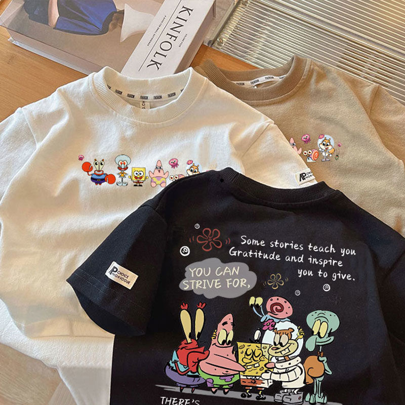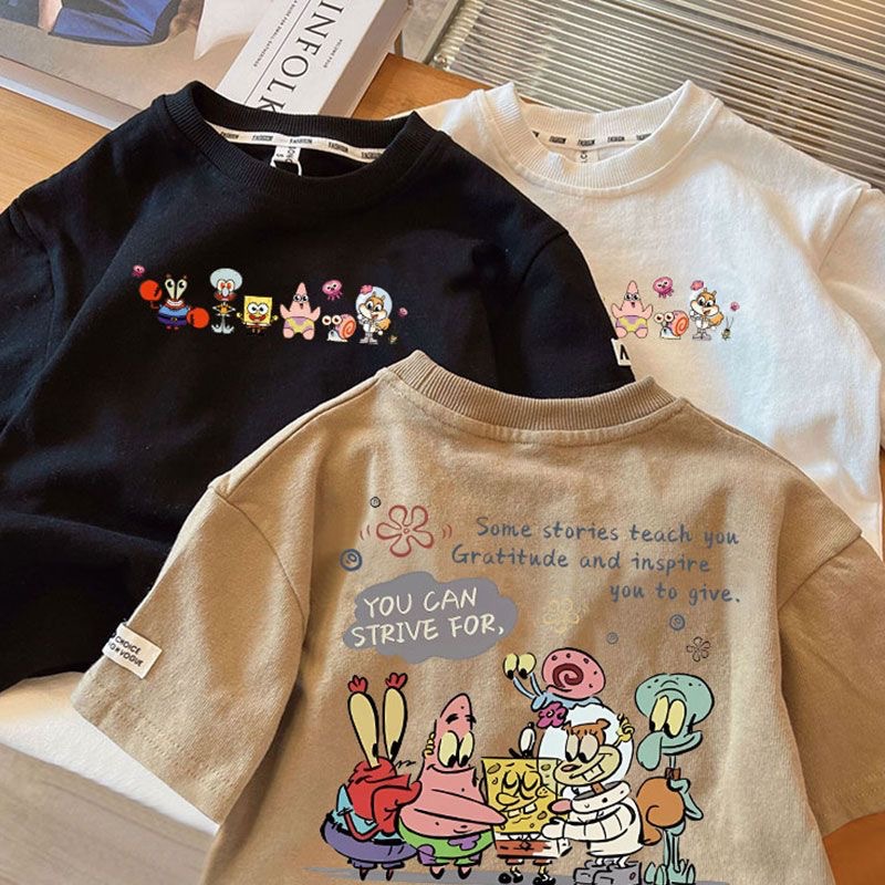Корейская версия с короткими рукавами: белый [двухсторонний Губка Боб]; Корейская версия с короткими рукавами: черный [двухсторонний Губка Боб]; Корейская версия с короткими рукавами: Каки [Двусторонняя Губка Боб]