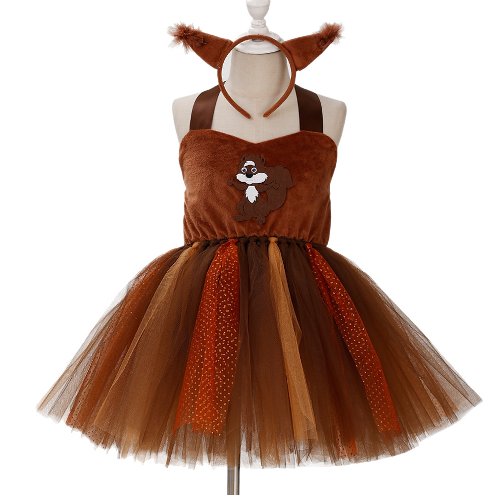 松鼠款儿童连衣裙动物装扮服饰儿童节表演服角色扮演跨境亚马逊