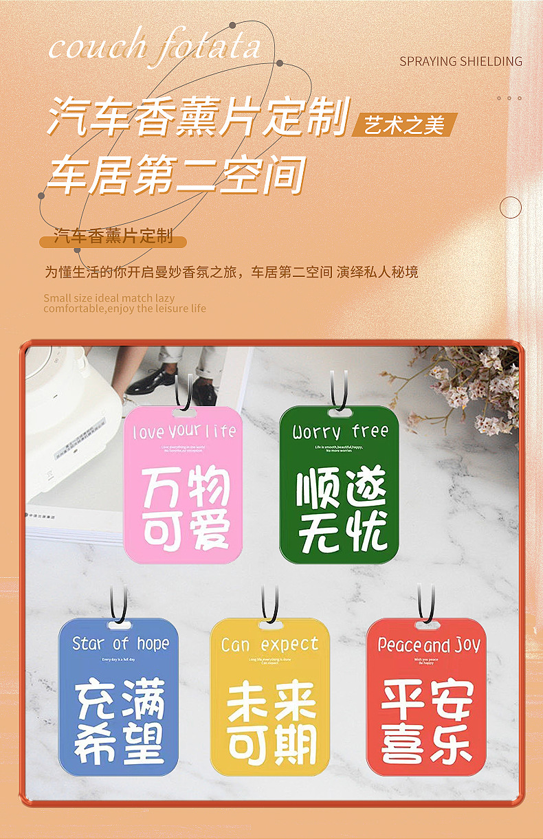 Заводская настройка логотипа, автомобильный ароматизатор, украшение «Мир и радость», подвеска, длительный легкий аромат, автомобильные ароматические таблетки