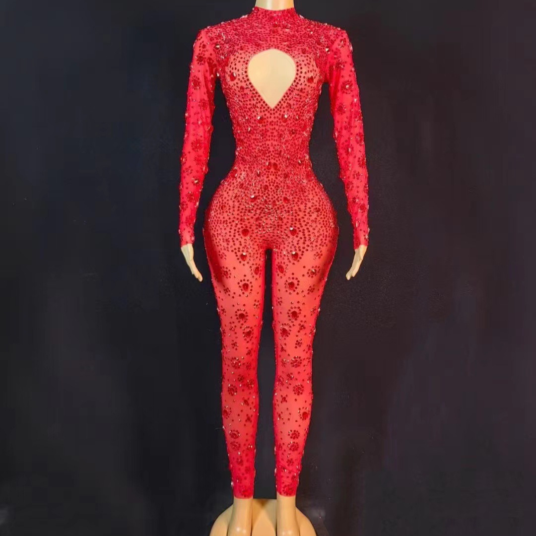 Одежда для трансграничных выступлений, сексуальный эластичный облегающий комбинезон высокого класса, блестящий кристаллический бриллиант, концертная певица