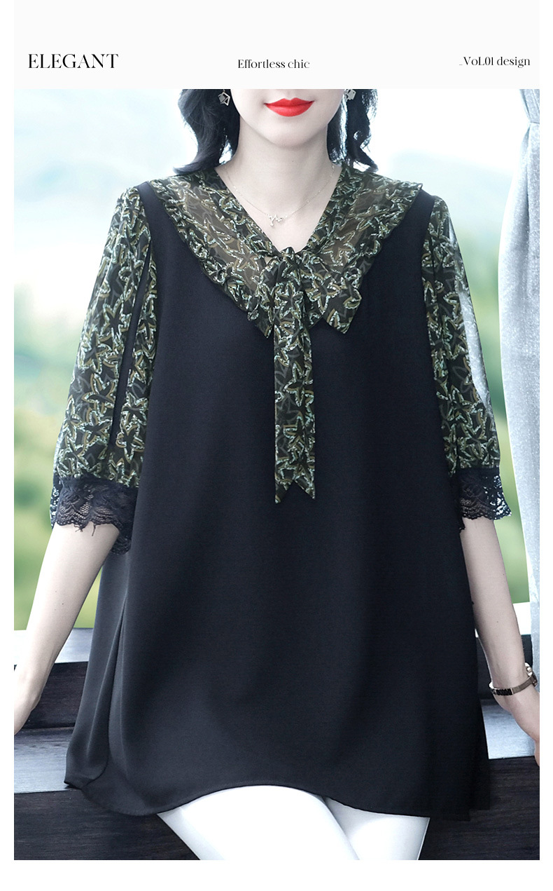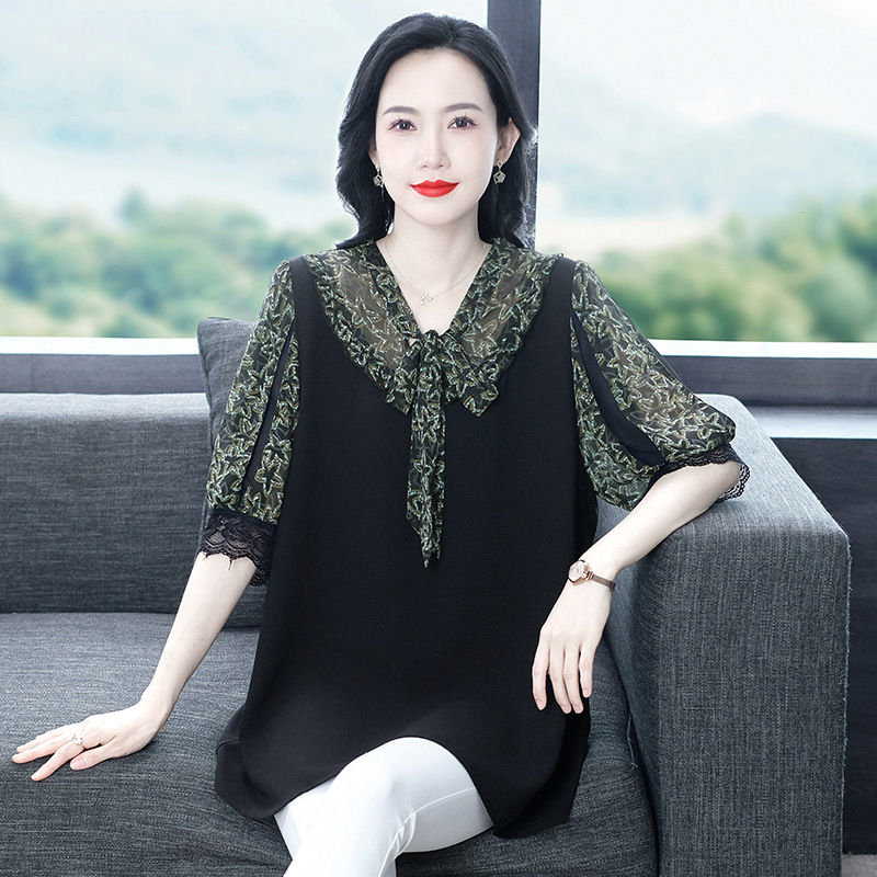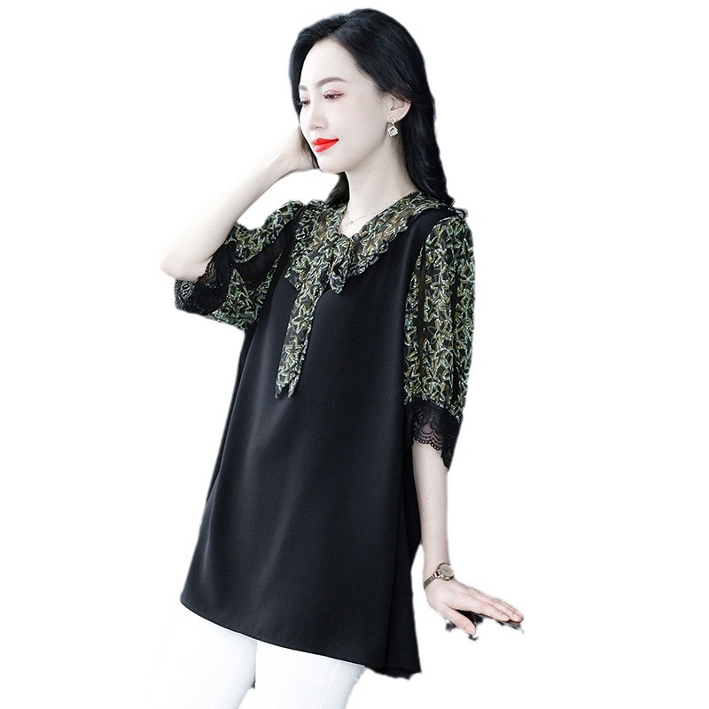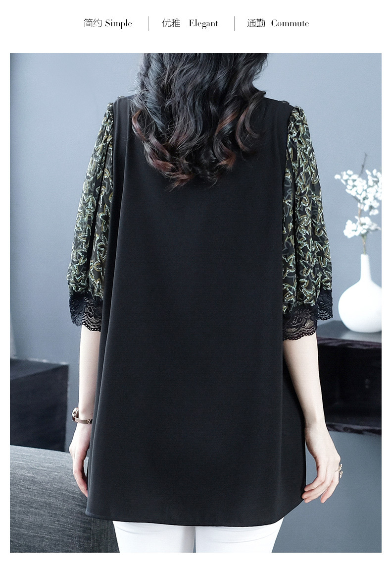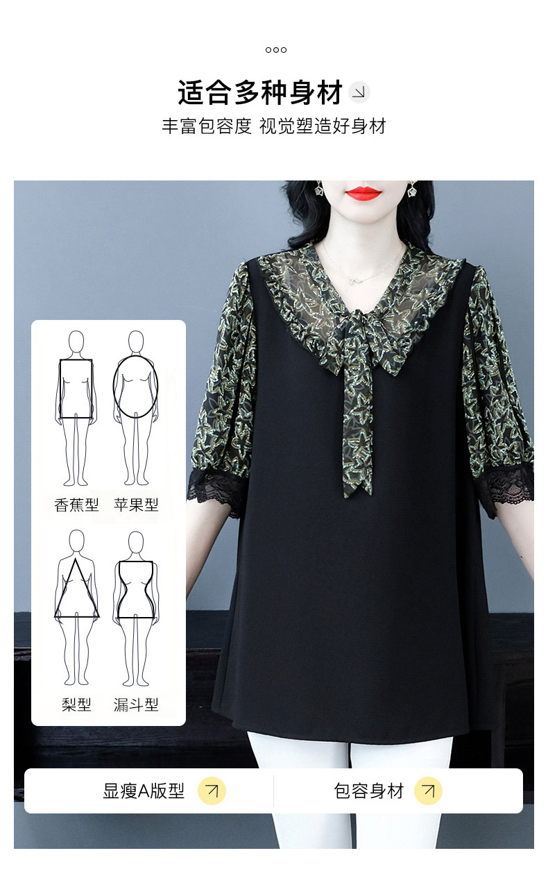 Летняя новая прямая трансляция, популярный стиль, кружевная шифоновая свободная утягивающая рубашка для похудения, повседневная рубашка со средними рукавами мм, топы, женская одежда