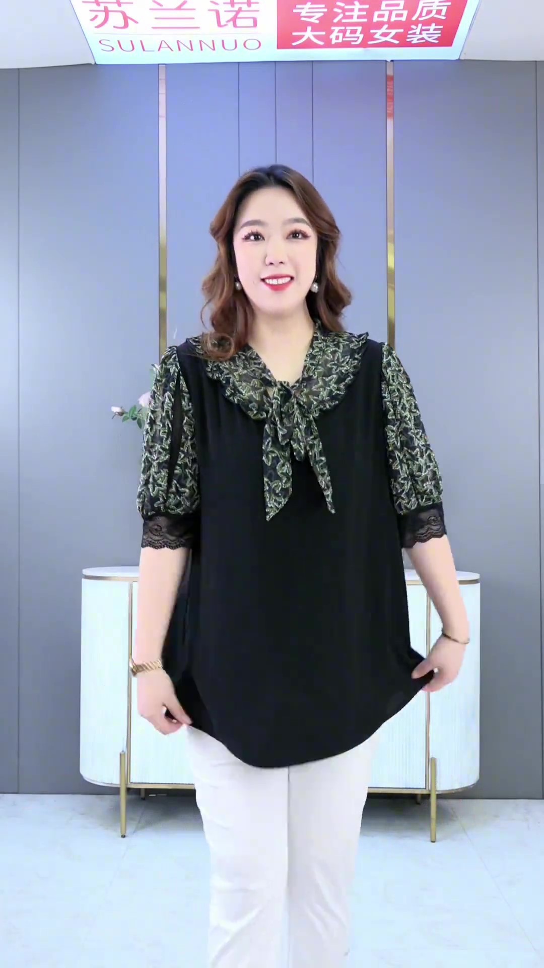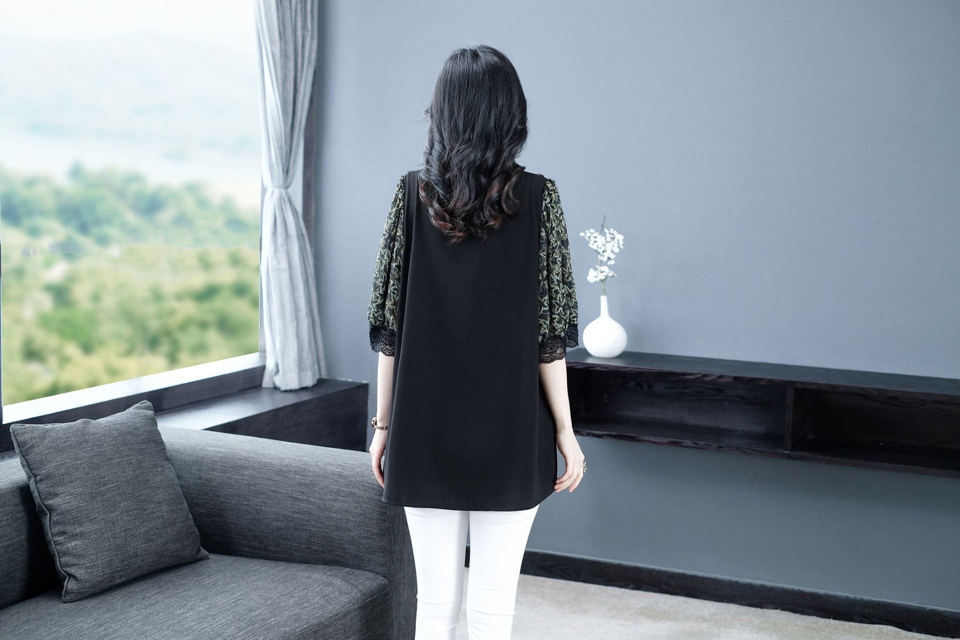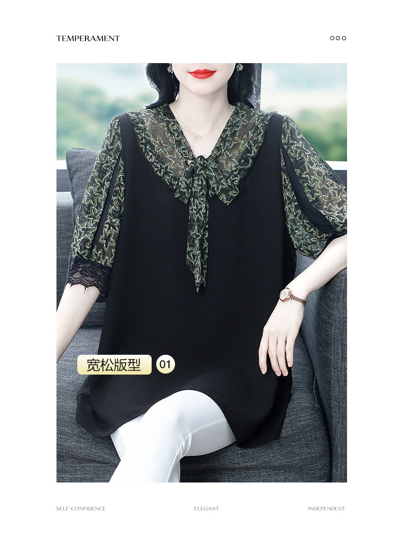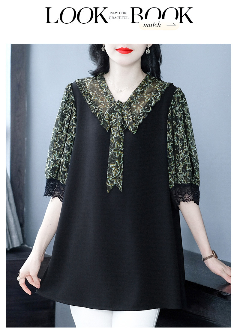 Летняя новая прямая трансляция, популярный стиль, кружевная шифоновая свободная утягивающая рубашка для похудения, повседневная рубашка со средними рукавами мм, топы, женская одежда