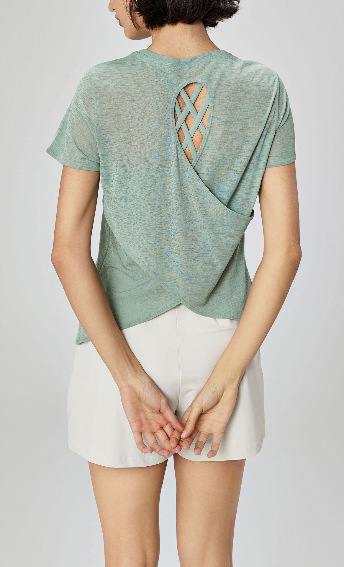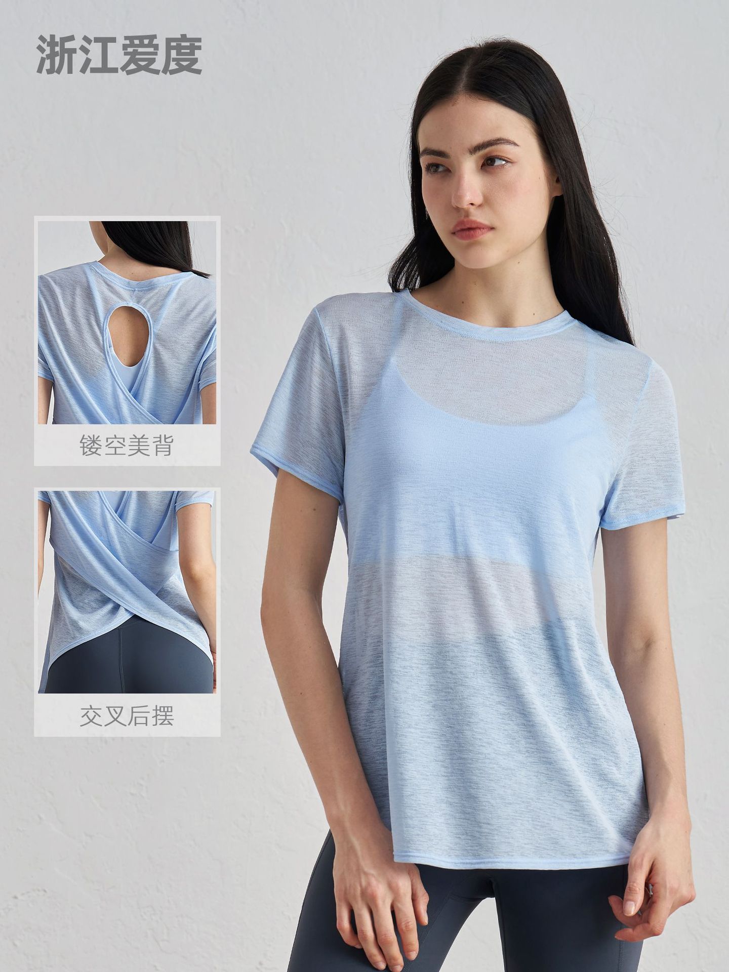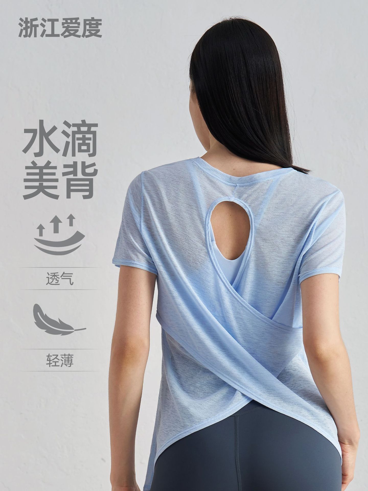 Бамбуковая пряжа Летняя дышащая йога T Лукан полые спортивные топы женская одежда для йоги с круглым вырезом для фитнеса с короткими рукавами летом