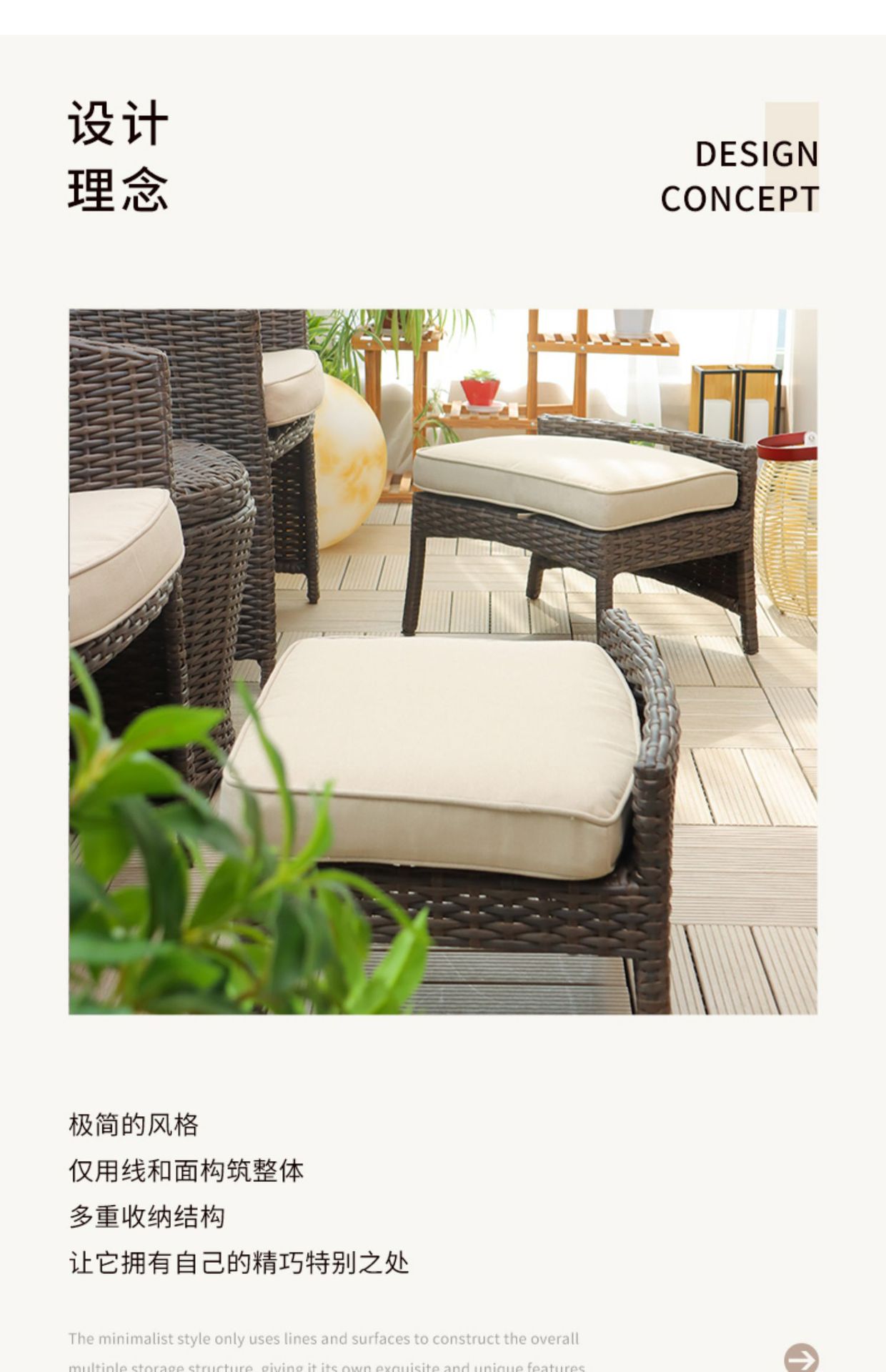 Хранение ротанга для хранения на открытом воздухе внутренний дворик Открытый балкон стол и стулья Небольшая комбинация Вилла, кровать и кафе, диван для отдыха