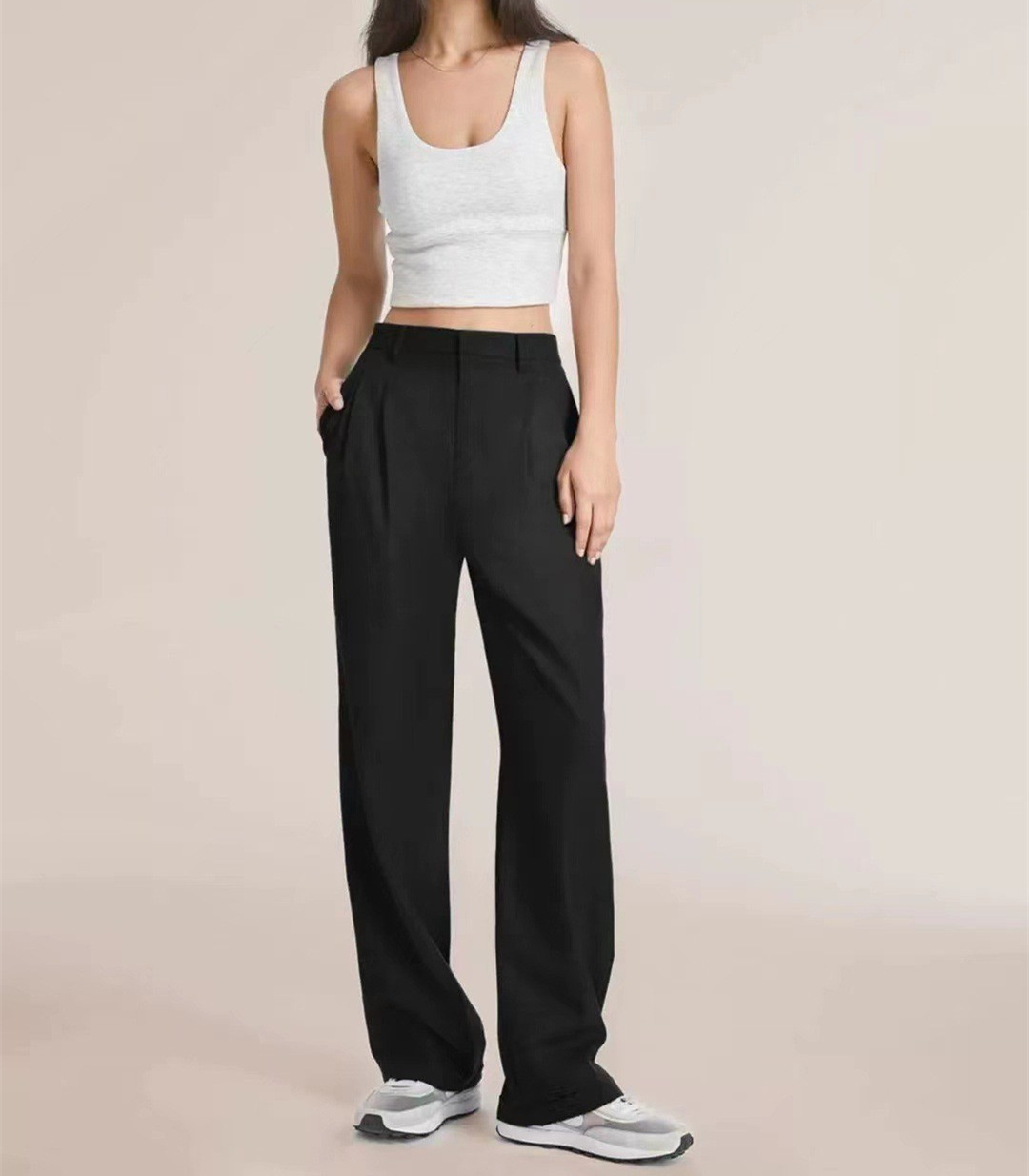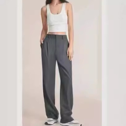 Чувство пригородной поездки тонкое за настоящим карманом с высокой талией широкие брюки с поясом широкие ноги повседневные брюки женские