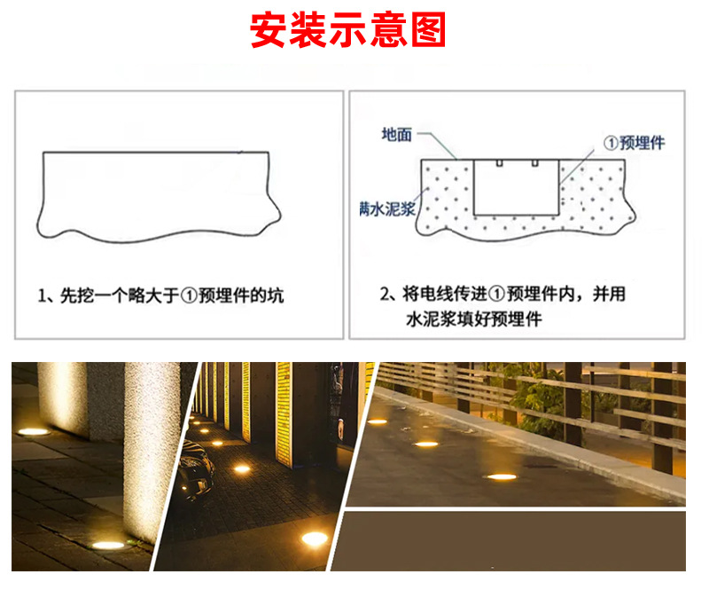 太阳能道钉灯 条形地埋灯 led嵌入式超薄地埋灯户外防水 地埋灯 圆形灯