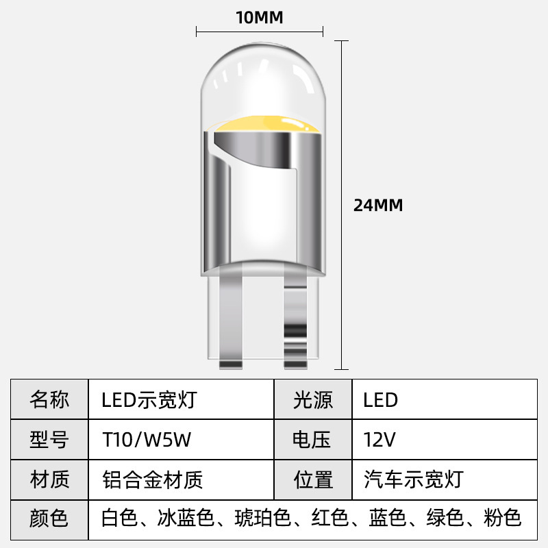 Популярная лампа T10 для указателей поворота, 12В, подсветка номерного знака, COB, высокая яркость, W5W, лампа для чтения, для мотоциклов и автомобилей, задний фонарь, модифицированная автомобильная лампа