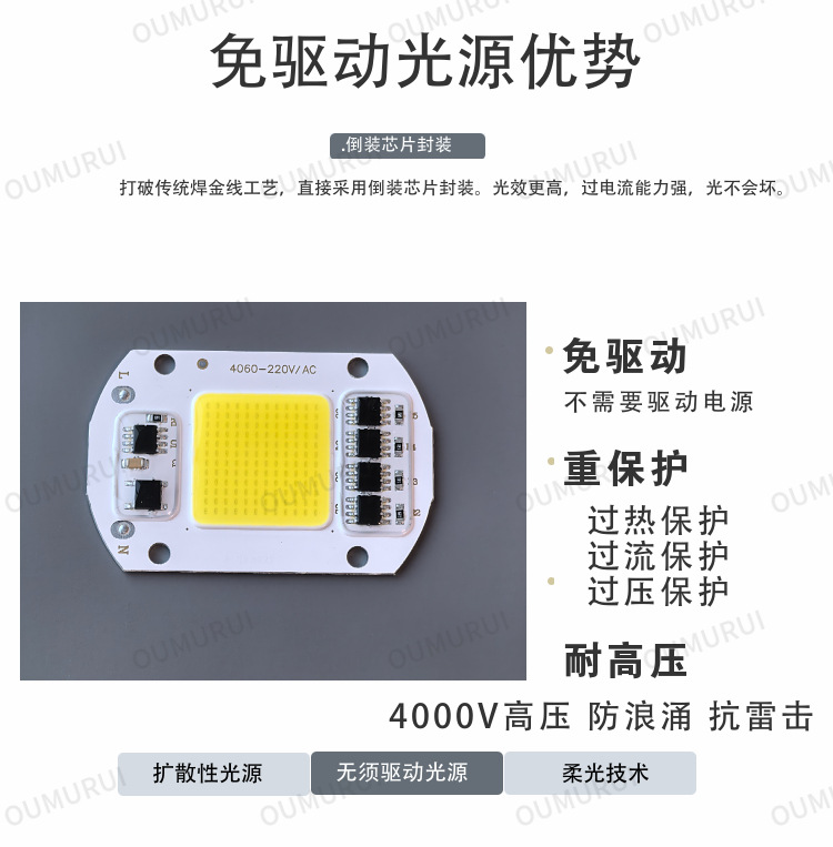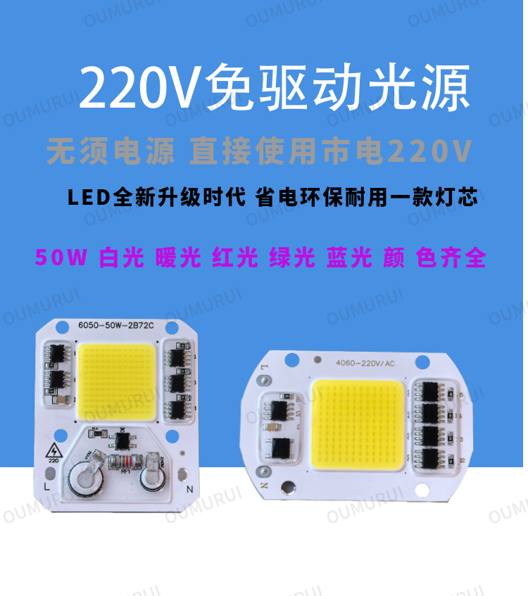Безприводный 50W интегрированный светодиодный источник света жемчуг уличный свет прожектор прожектор фонарь чип 220V световой панели