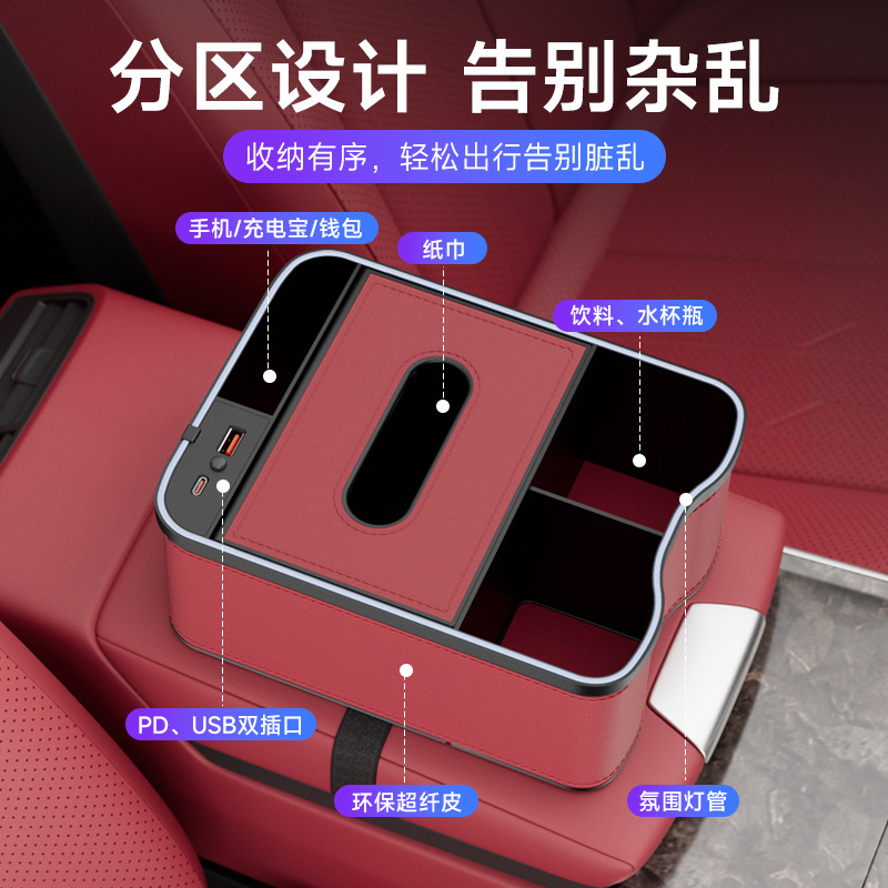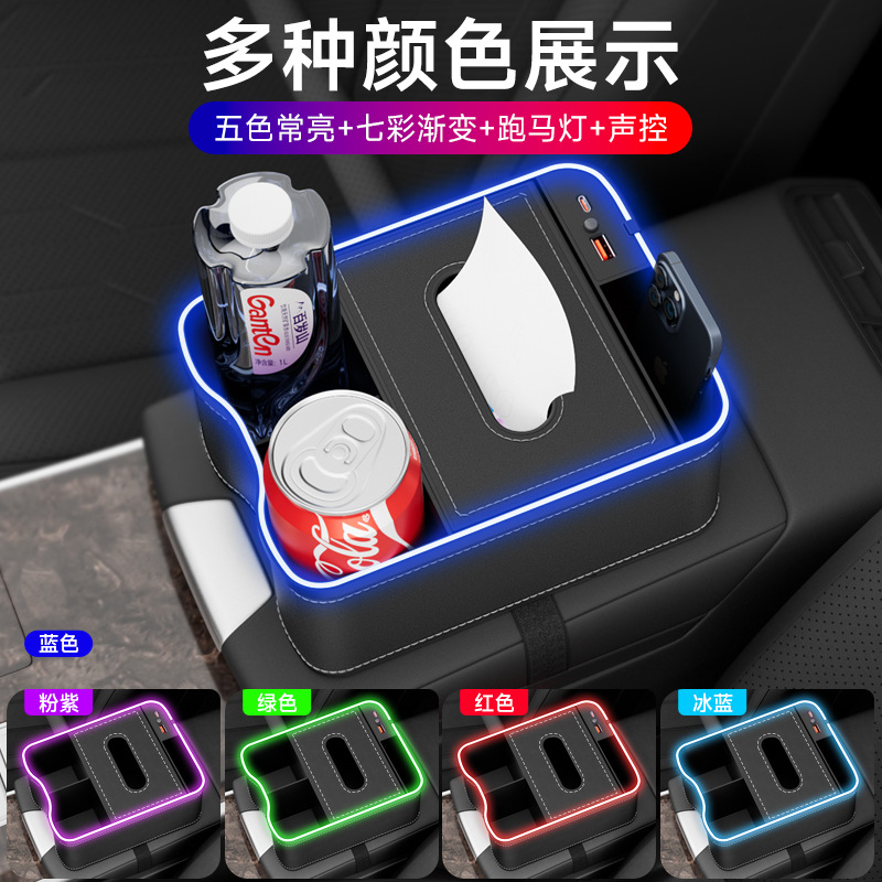 Новый автомобильный подлокотник коробка для хранения красочные светильники для зарядки расходные материалы для салфеток коробка для хранения многофункциональный