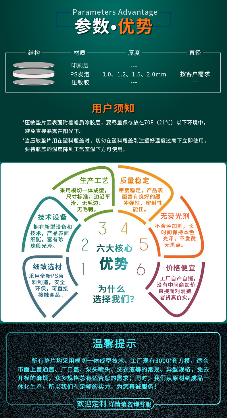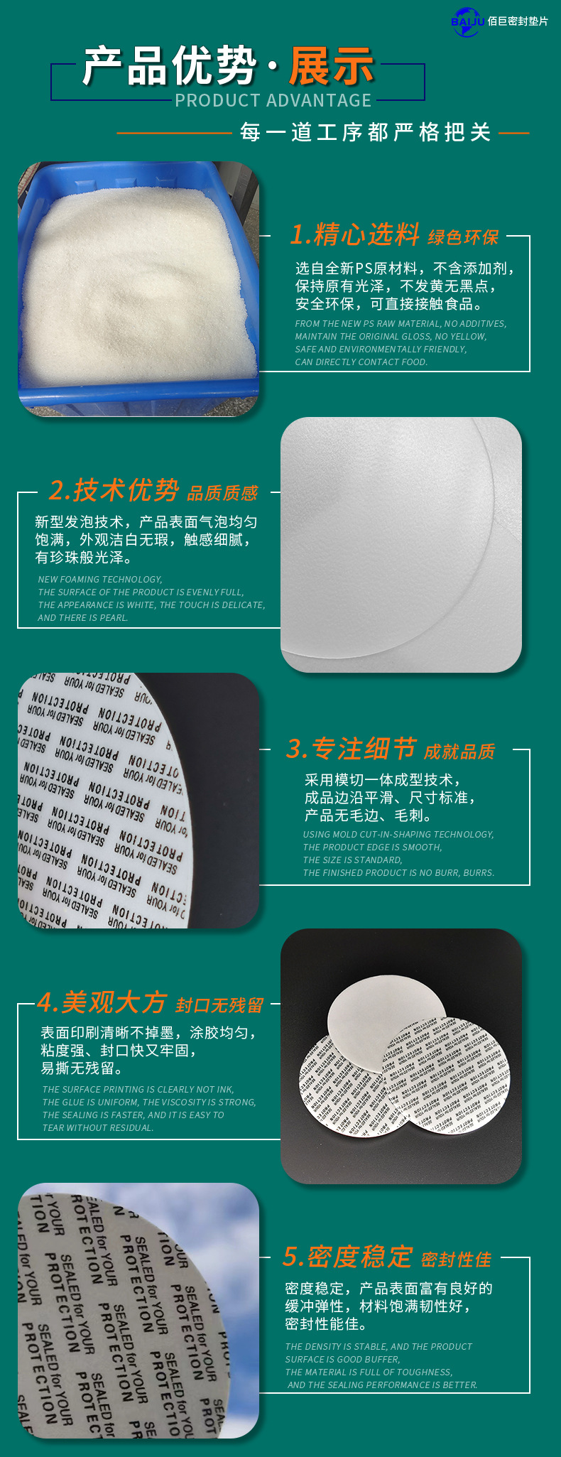 Самоклеящаяся прокладка, чувствительная к давлению, для герметизации крышек бутылок и предотвращения протечек, пищевая прокладка из полистирола, не требует оборудования, затягивайте крышку через 2 часа для надежной фиксации.