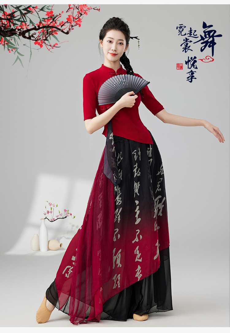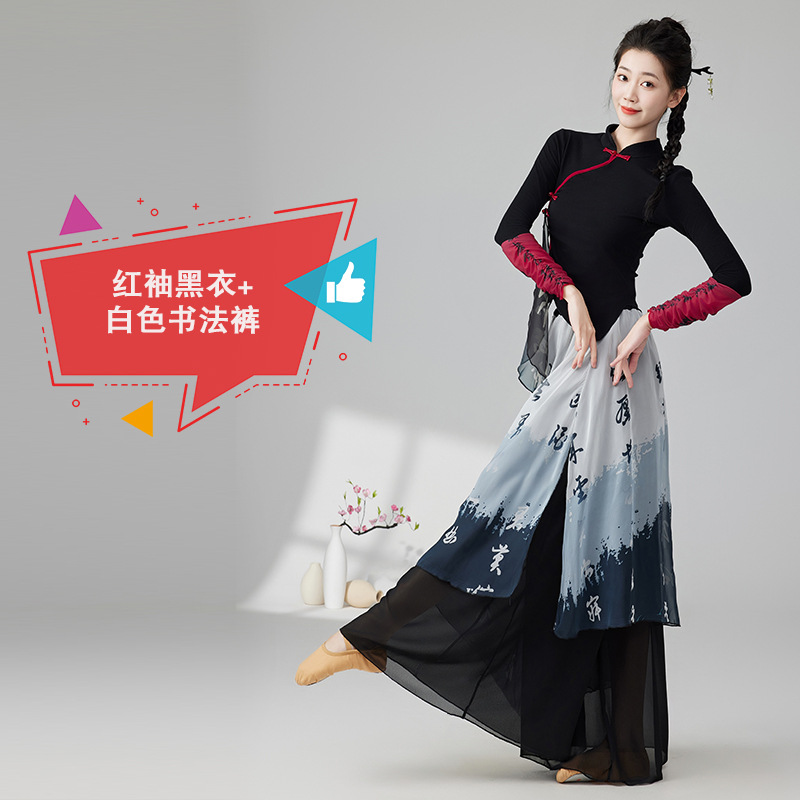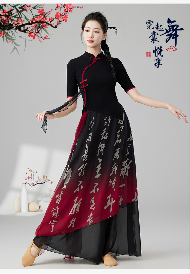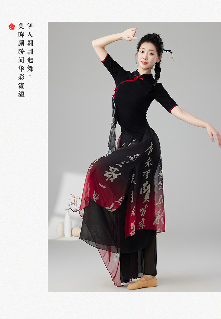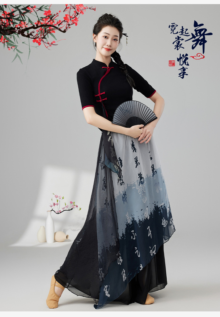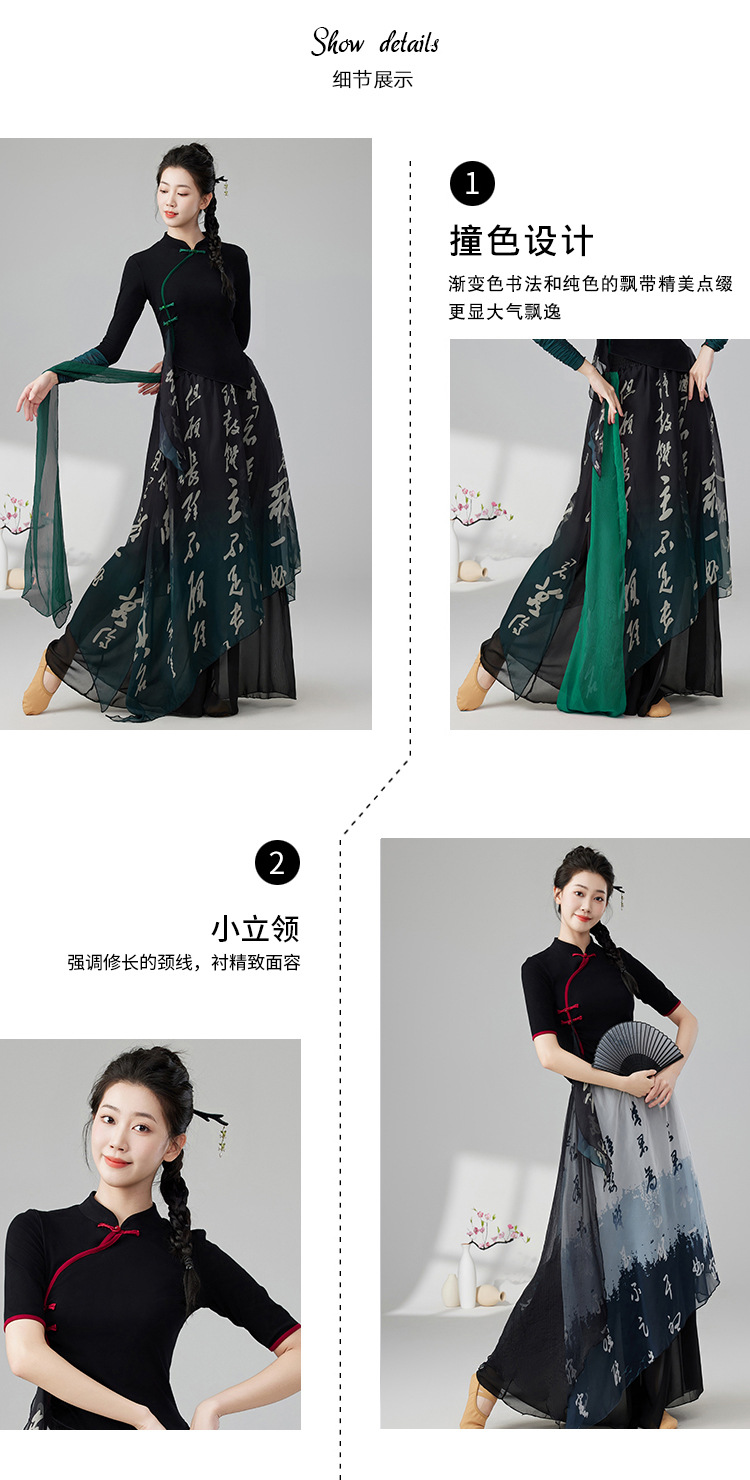 1.上衣为优质螺纹棉面料,书法裤为优质天丝面料,书法裤使用的是全幅印花工艺,全幅印花未改短,裤子更大气更飘逸,书法的印花内容能更好的体现,更上档次。