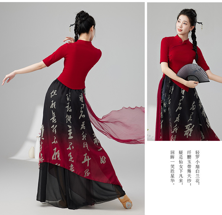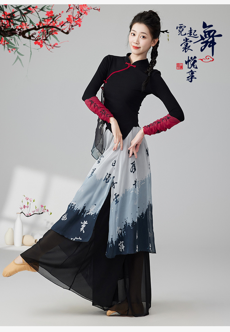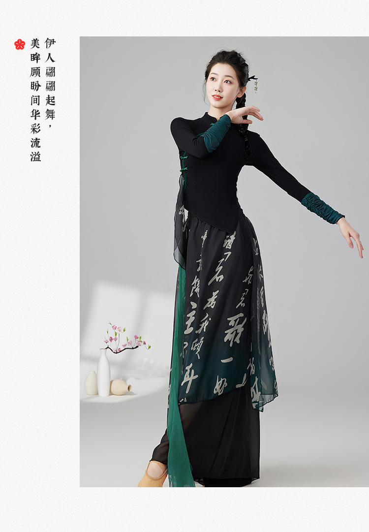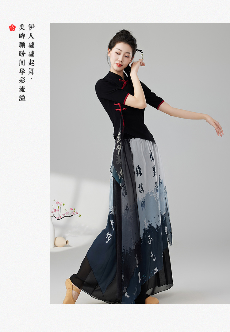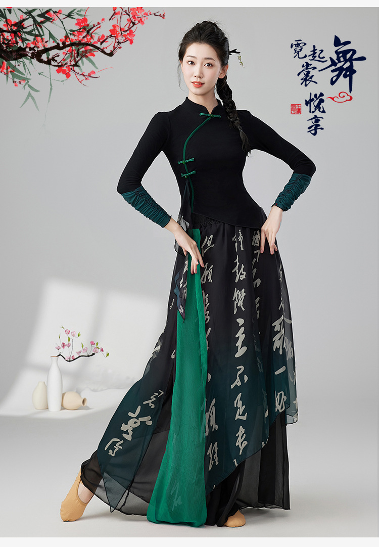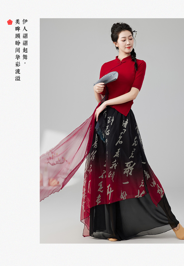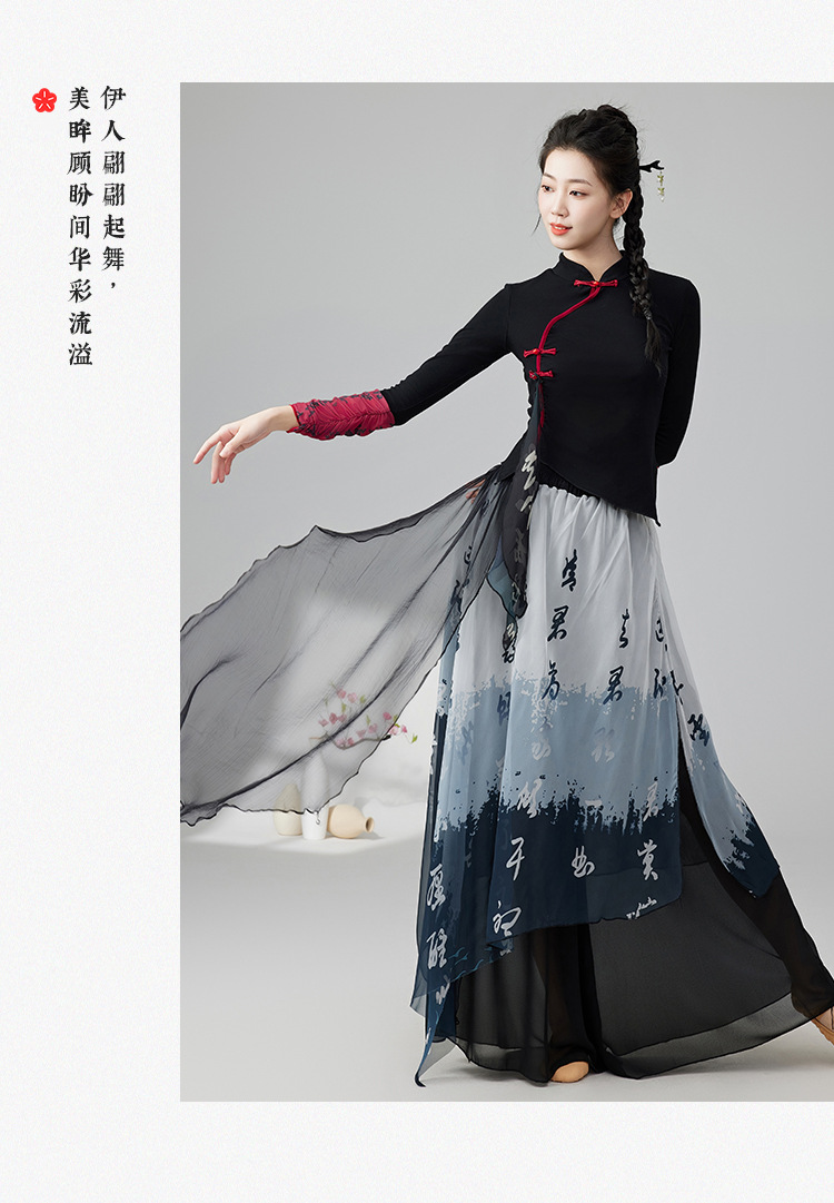 1.上衣为优质螺纹棉面料,书法裤为优质天丝面料,书法裤使用的是全幅印花工艺,全幅印花未改短,裤子更大气更飘逸,书法的印花内容能更好的体现,更上档次。